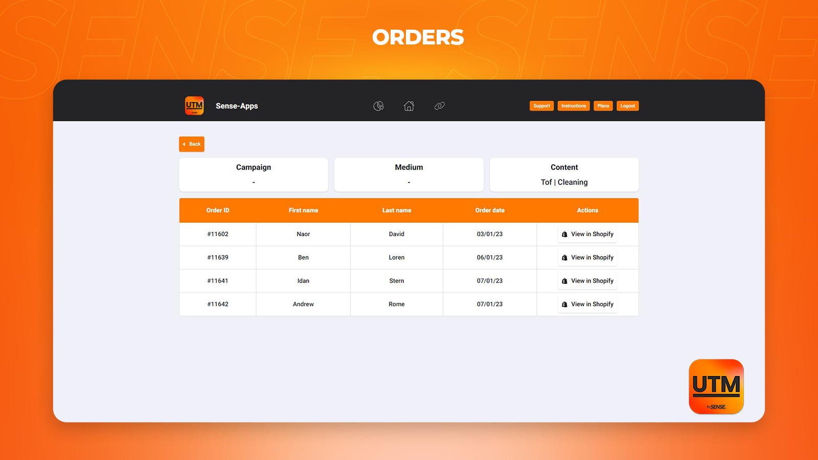 Sense UTM Analytics provides a simple solution for track and analytics of order UTM sources.