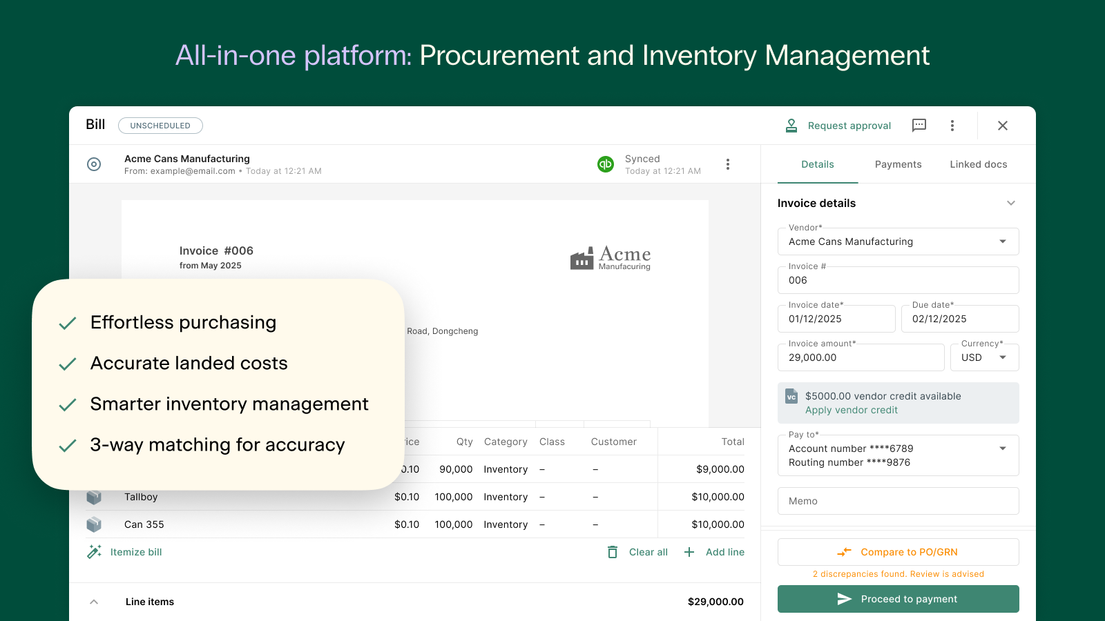 Automated landed costs, real-time COGS, and inventory tracking.