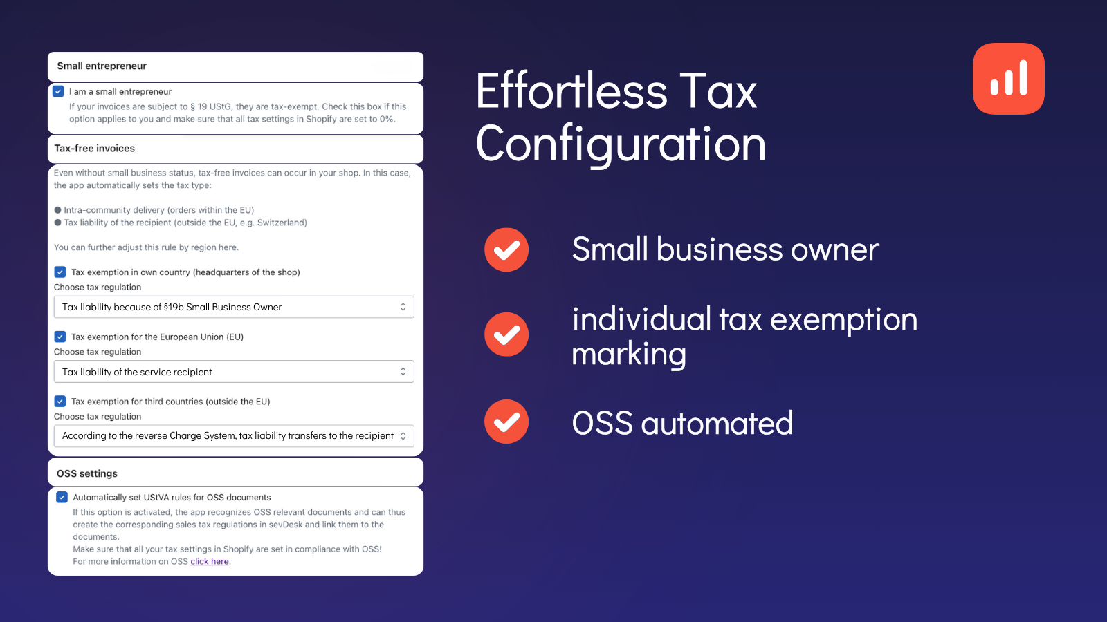 Save time and manual effort by: Synchronisation of order data, Automatic creation and sending of invoices and credit notes, Automatic creation and sending of refunds, Payments & payment accounts, Dynamic text replacement for invoices and refunds, Historical order import, Multi-account management, DATEV export ready to save receipts and much more...
