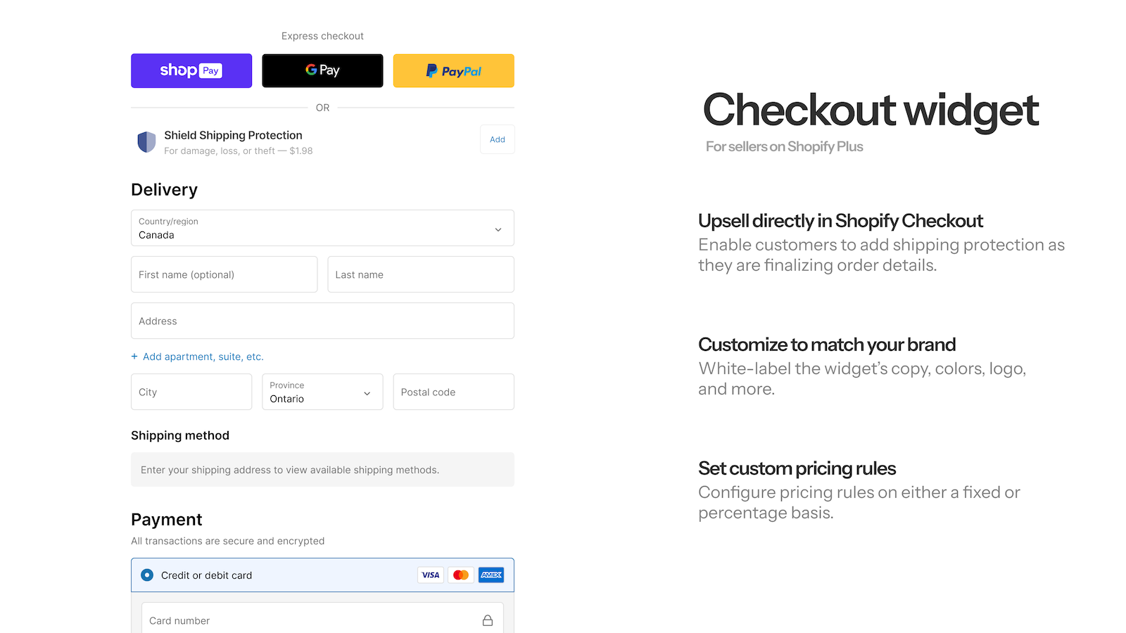 Shield is a platform that enables you to set custom fees for protecting against loss, damaged, or stolen packages. Instead of offering third-party shipping insurance, offer package protection to your customers directly. Depending on store size, merchants on Shield earn anywhere from a few hundred to tens of thousands per month in additional revenue.