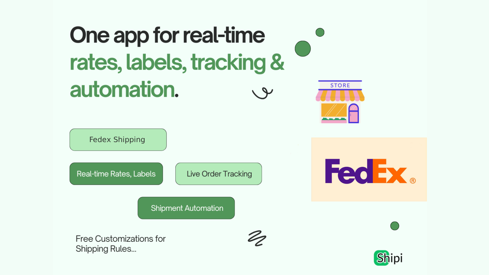 Shipi helps Shopify merchants automate their entire shipping workflow - from live rate calculation to label generation, fulfilment, and real-time tracking - FedEx. Whether you ship locally or globally, Shipi makes shipping smooth, reliable, and easy to manage inside Shopify. Custom functionality can be added per request.