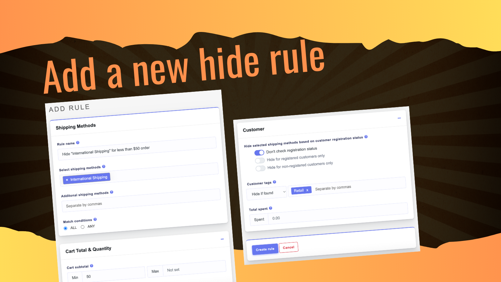 Hide shipping rates conditionally by customer tags, collections, products, total etc at checkout.