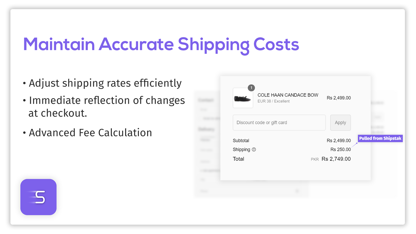 Shipstak transforms your shipping management into a streamlined and efficient process. With just a single CSV upload, set your carrier rates and keep them consistently updated without the hassle. This tool allows for precise fee calculations based on the weight and quantity of items, providing accurate billing for every transaction. Designed to blend seamlessly with your checkout, Shipstak enhances the customer experience by providing immediate and transparent shipping.