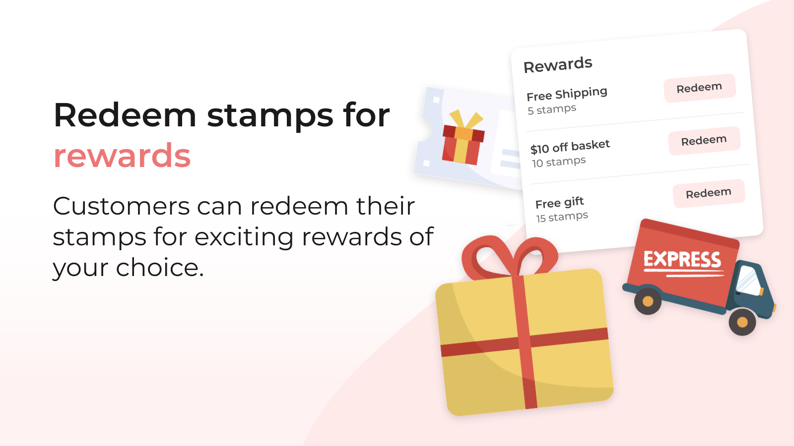 Build a fully custom-branded stamp card loyalty program for your store. Setup in minutes.