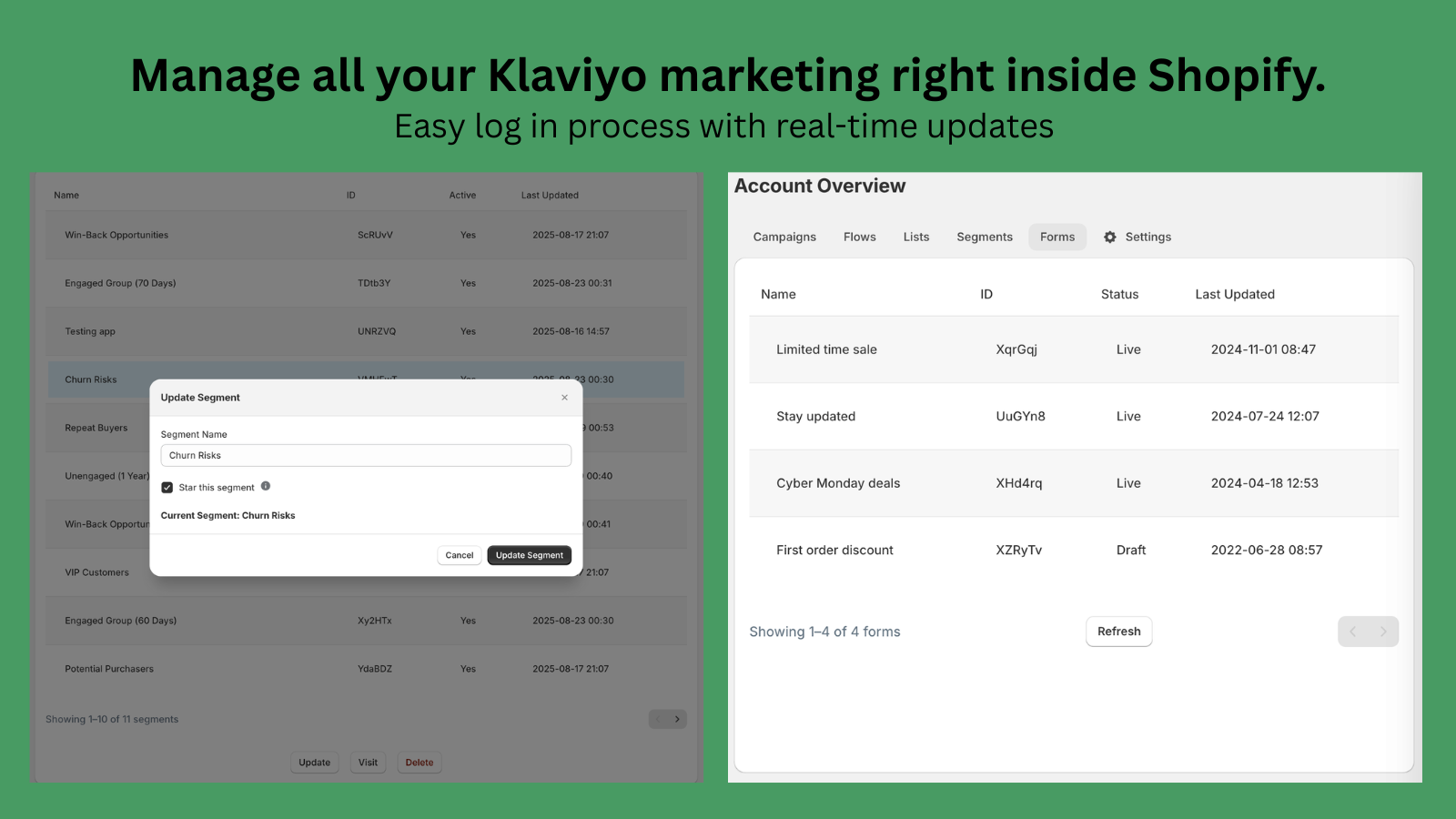 Run Klaviyo marketing within the store admin —save time with everything in one place.
