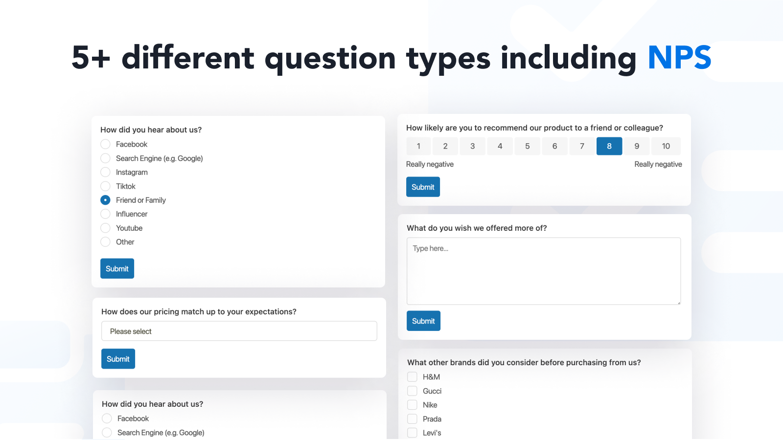 Post purchase surveys, email & abandoned cart surveys and more