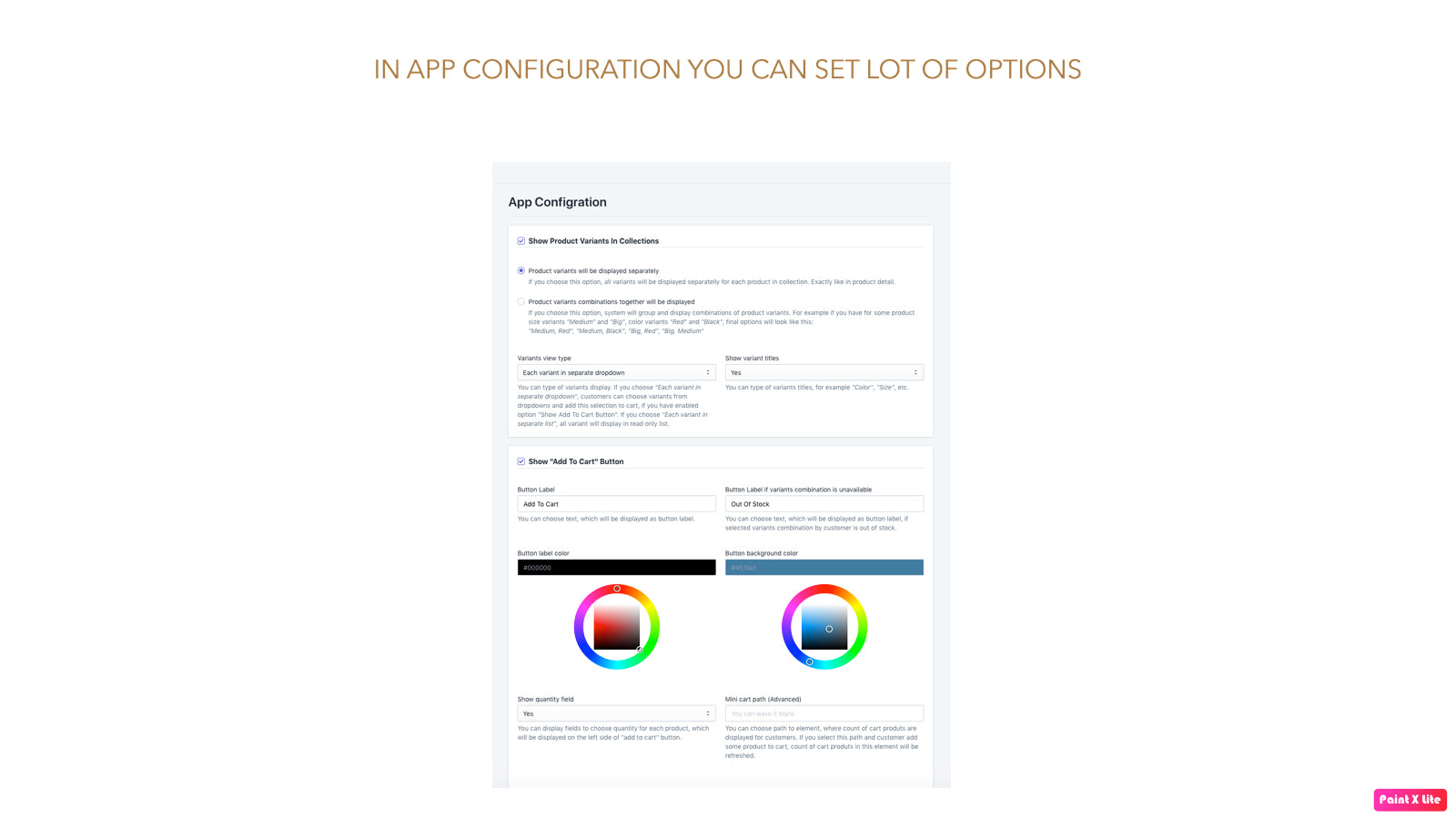 With this app, you can offer your customers faster way of shopping. Customers can add their favourite product variant to the cart directly from your collections, without viewing the product page. For example, you can show your customer available sizes or colors for each product, directly in the home page, all collections, or search results. If you want just show your customers variants of all products in your collections, you can do it also without option to add it to cart.