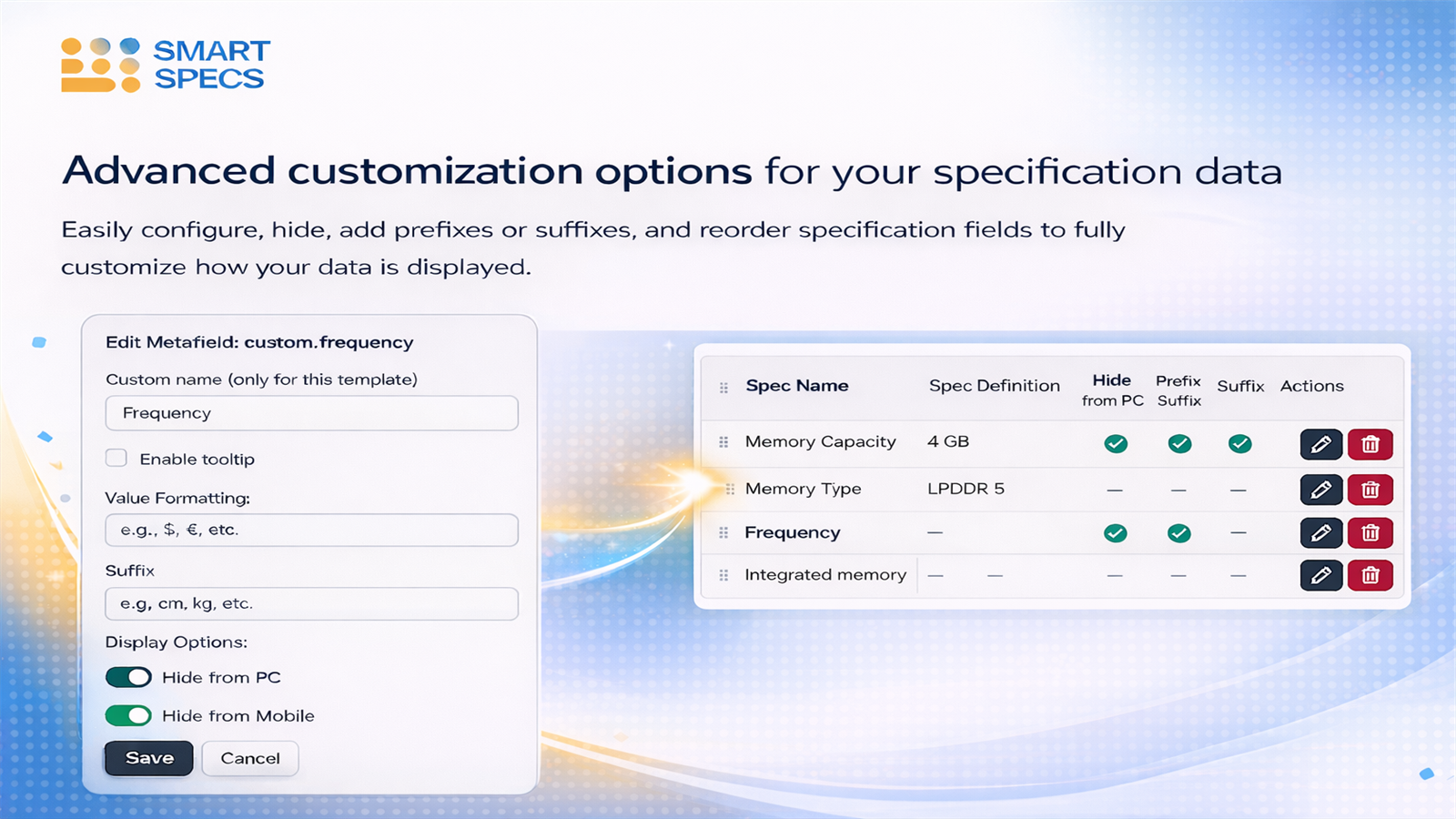 Smart Specs creates customizable specification tables for products without any coding knowledge