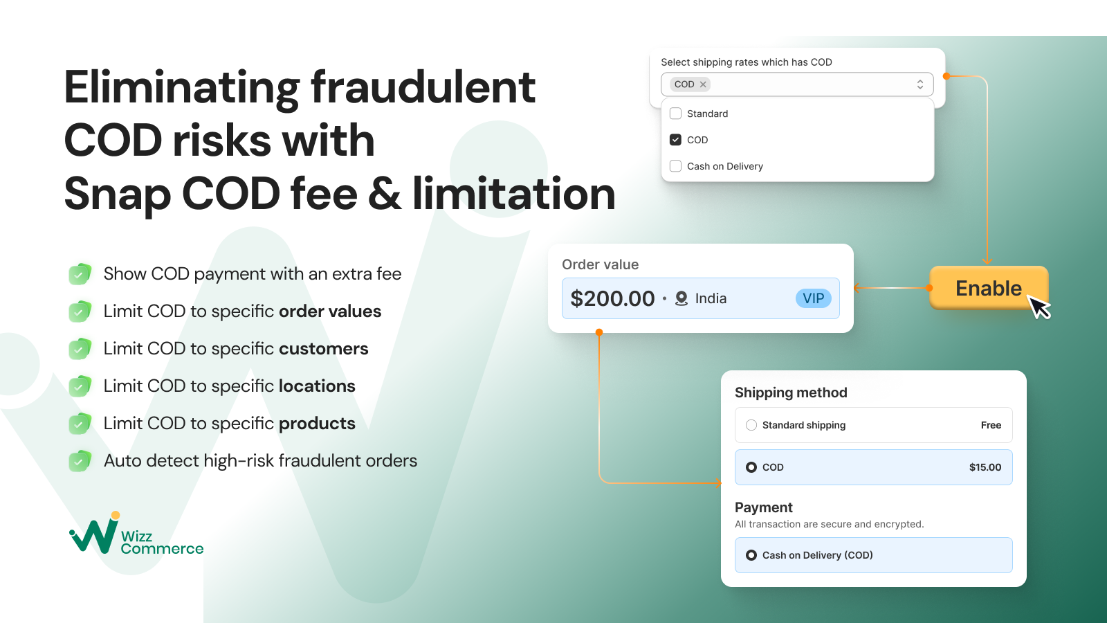 Are Cash on delivery frauds turning into a nightmare for your store, driving up RTOs (Return to Origin) and operational costs? Snap COD Fee & Limitation is here to help. We offer advanced cash on delivery such as display COD payment with extra fees or limit/hide COD to specific orders so that you can totally protect your store from potentially fraudulent customers. With our auto-scoring fraud detection feature, merchants can easily predict serious buyers to offer COD payment.