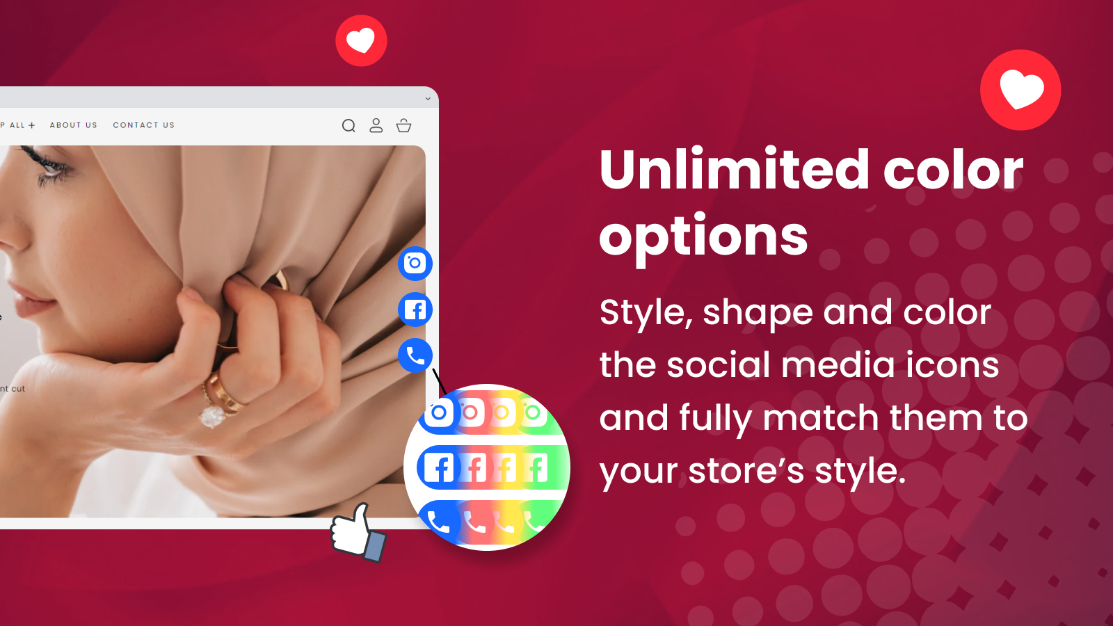 Add social media icons of popular social media networks to your store and improve social share.