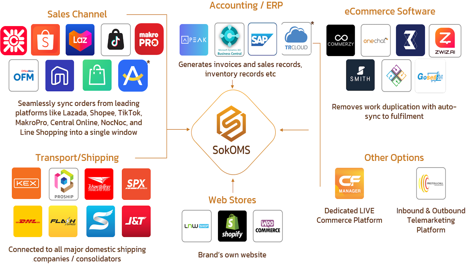 Connects store to SOKOMS powered warehouse and fulfilment centers for order processing in realtime.