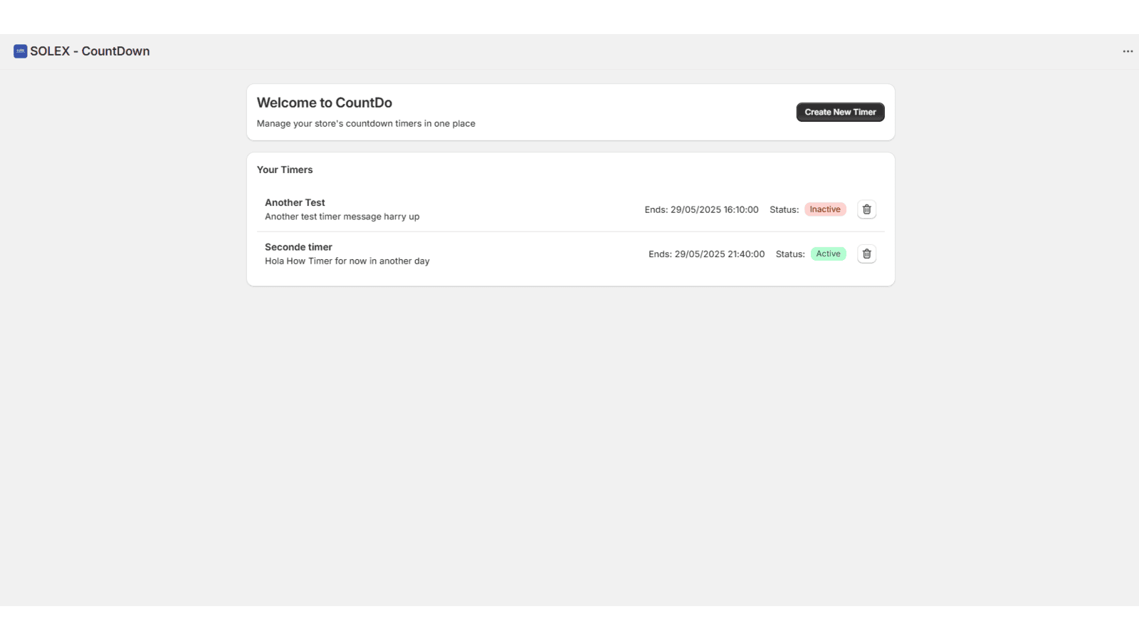 SOLEX - CountDown helps merchants create and manage countdown timers to highlight time-sensitive offers or events. With flexible scheduling and customizable designs, timers can be added anywhere in the store theme. Merchants can control visibility, manage active timers, and align them with their marketing campaigns all from one simple interface.