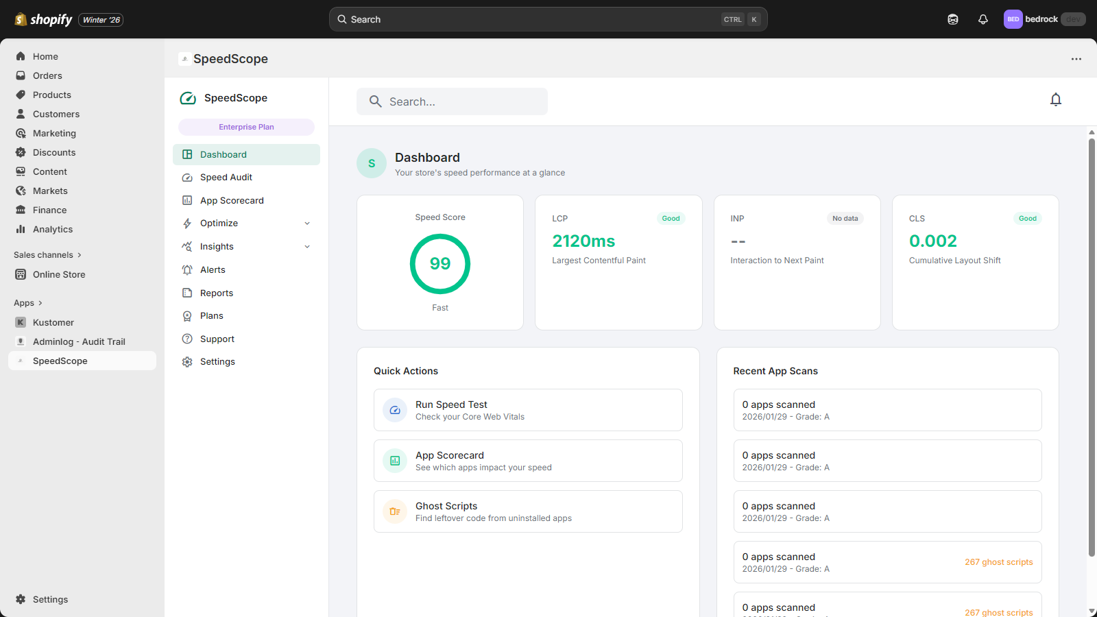 SpeedScope monitors your store's speed, finds slow apps, fixes performance issues automatically.