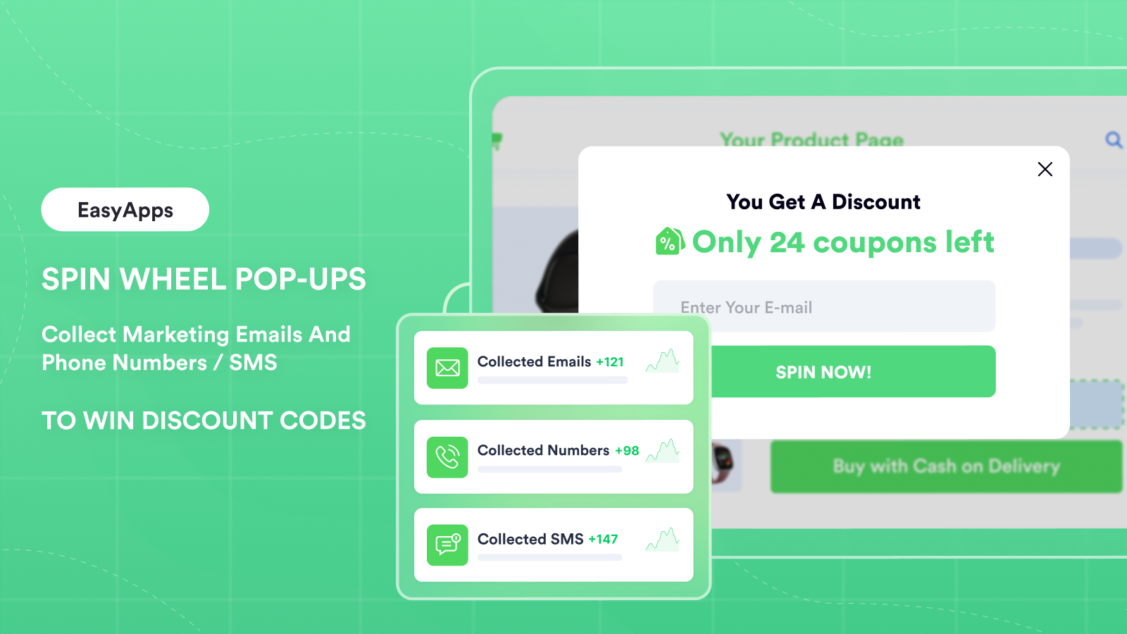 Grow Email & SMS lists: coupons, gifts, discounts, spin the wheel pop ups, Email popup & SMS Pop ups