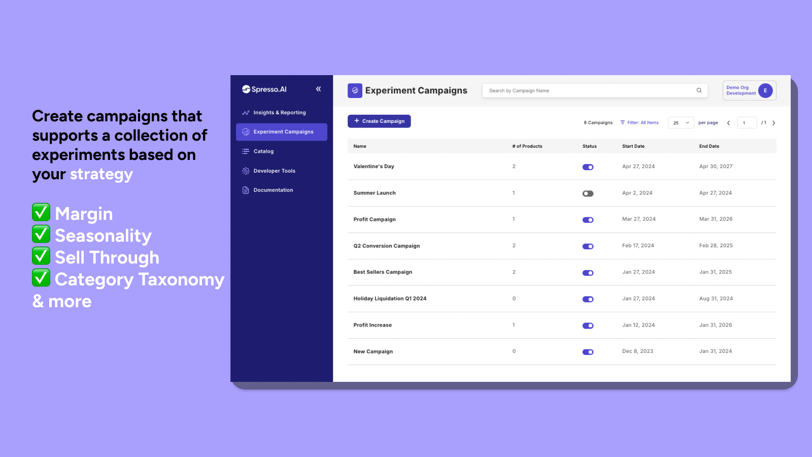 Spresso's Pricing Intelligence is a plug and play solution to provide dynamic pricing functionality to every item in your catalog. Using our proprietary AI, we can fine tune pricing on a per-SKU basis to maximize margin, revenue, profit or any range in between. Our app optimizes pricing for all retail models, conditions, and the full product lifecycle. Pricing Intelligence is built by retailers for retailers.