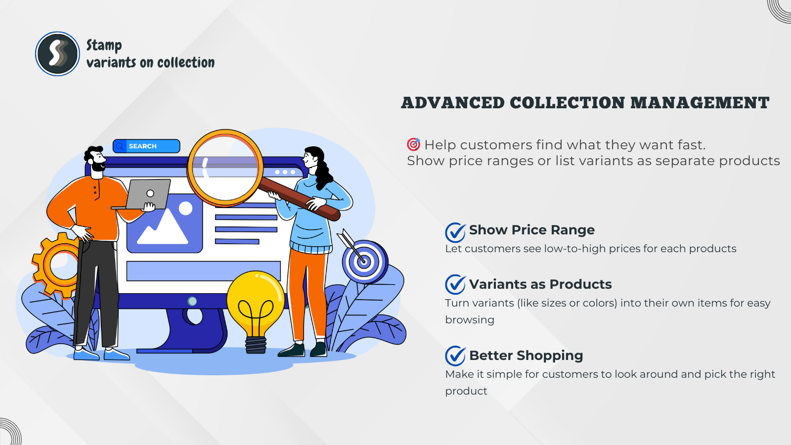 Customize your collection page to display variants separately or show product price ranges easily.