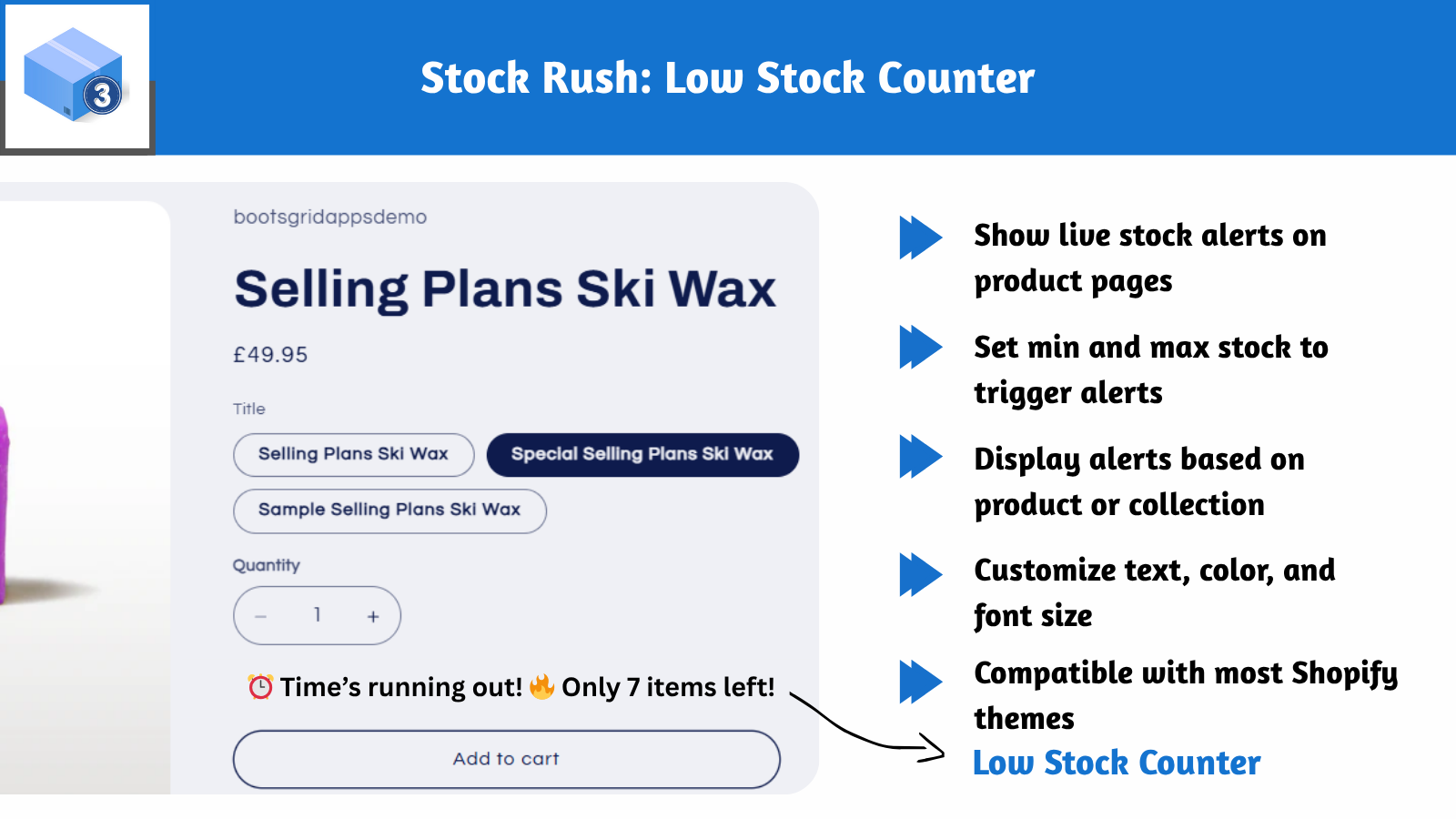 Create urgency with real-time low stock alerts. Show dynamic quantity counters on products.