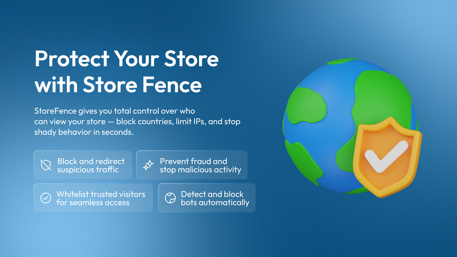 StoreFence blocks unwanted traffic by country or IP to protect your store and enhance security.