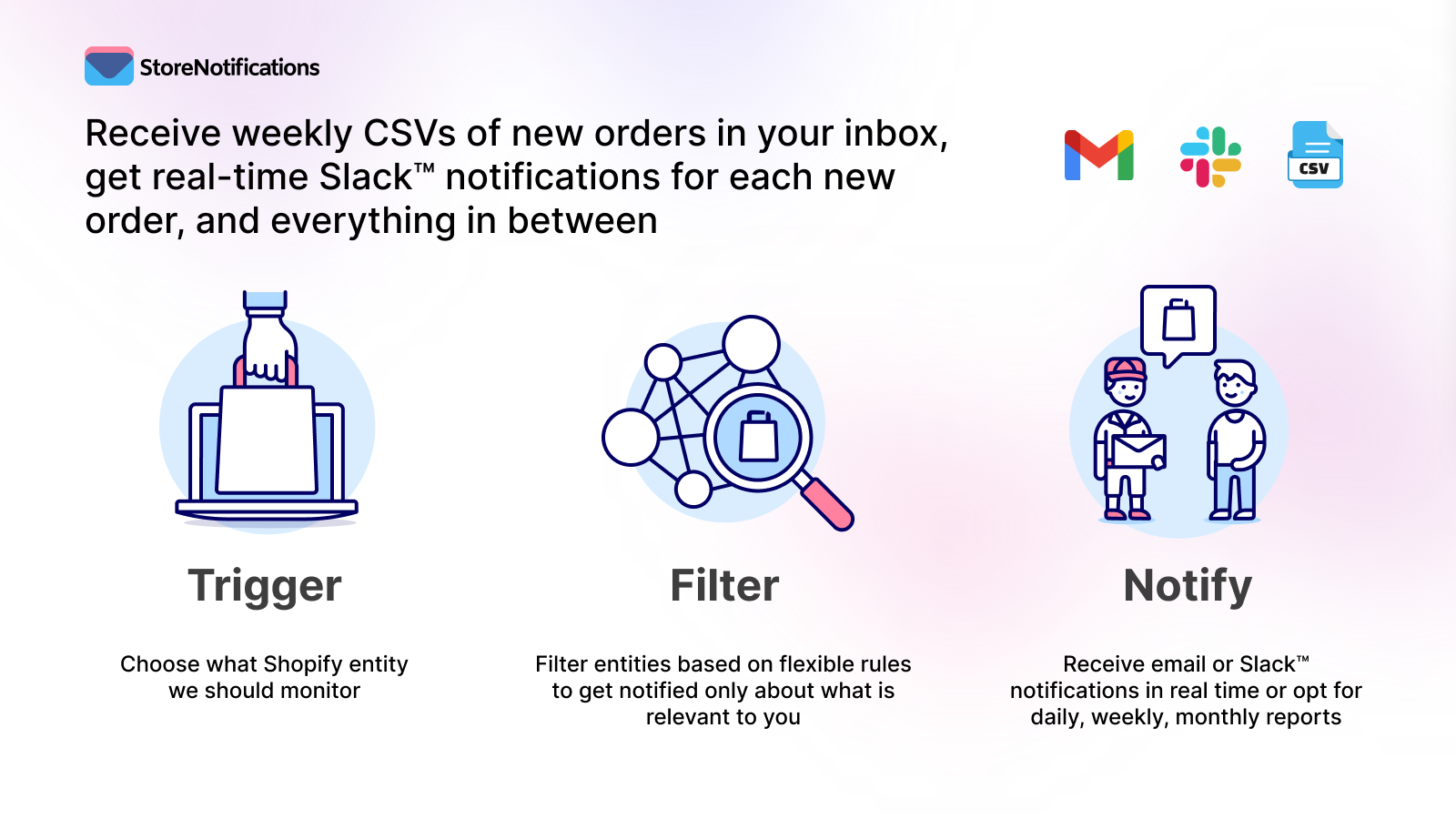 Store Notifications empowers merchants with complete control over their store notifications at various levels, from orders and line items to products, variants, and customers. Say goodbye to the hassle of manually filtering and forwarding orders to suppliers, vendors, and staff. Our intuitive rule creator simplifies the process, allowing you to customize notifications with advanced filtering and receive detailed data through the attached CSV file.