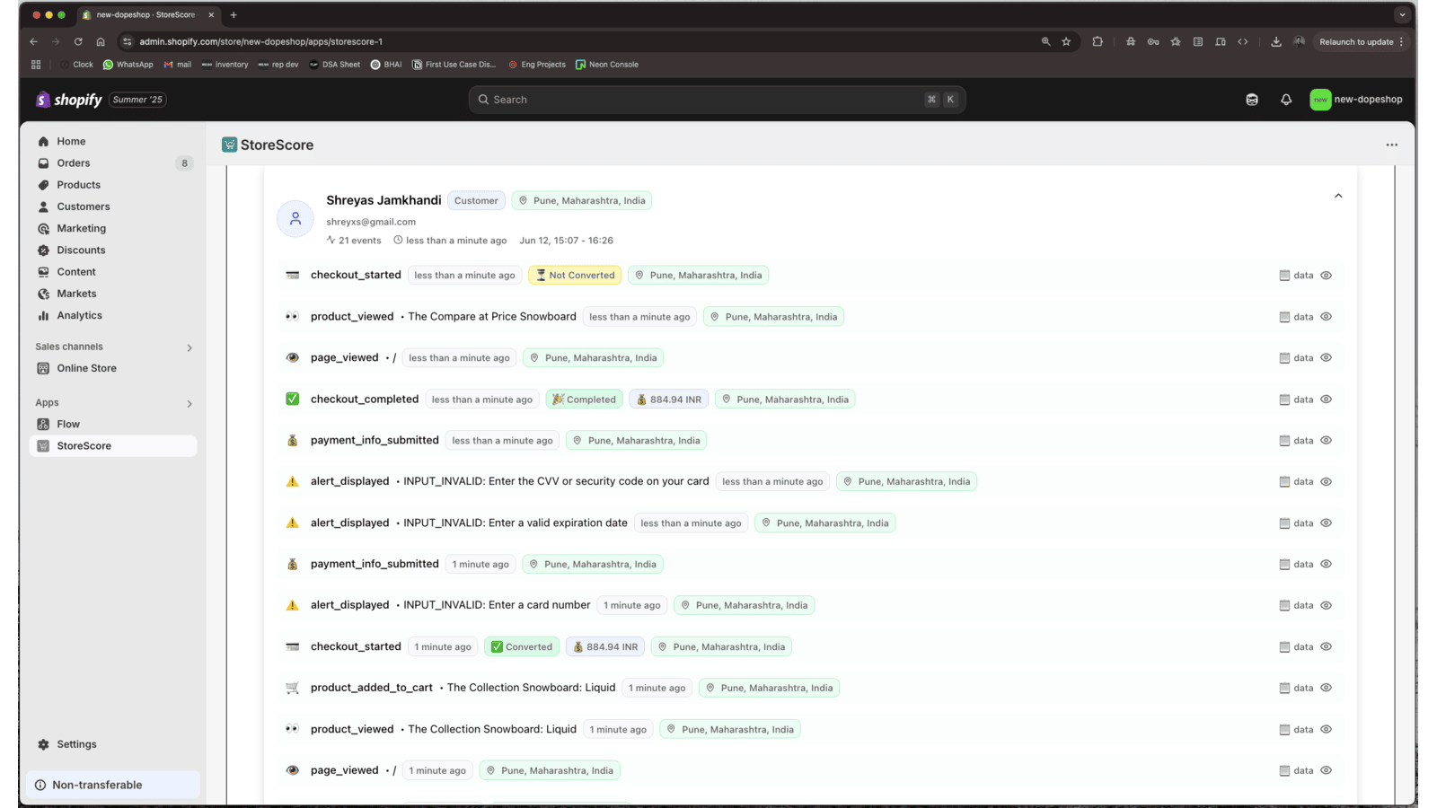 StoreScore is your store’s eyes. One tiny pixel notes every move—page views, product looks, cart adds or drops, checkout steps, sales. The live board shows sales, visitors, sessions, and the spots where shoppers leave. Click any session for a clear, city-tagged path with items and discounts. Need focus? Quick filters let you pick a date, customer type, or traffic source in seconds. See which products shine, which pages lag, and act now! Data never leaves Shopify, and setup takes seconds.