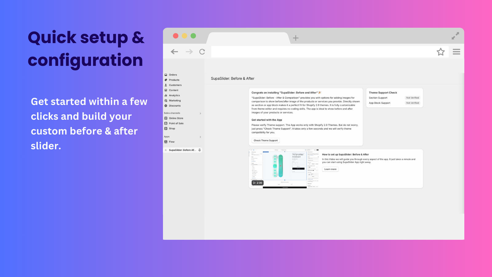 SupaSlider: Before - After & Comparison offers you the option to add images for comparison, showcasing before/after images of your products or services. It is directly displayed as a section in the customization area, making it a perfect fit for Shopify 2.0 themes. Fully customizable through the theme editor, it requires no coding skills. The app is an ideal fit for any industry wanting to display before and after images of their products or services.