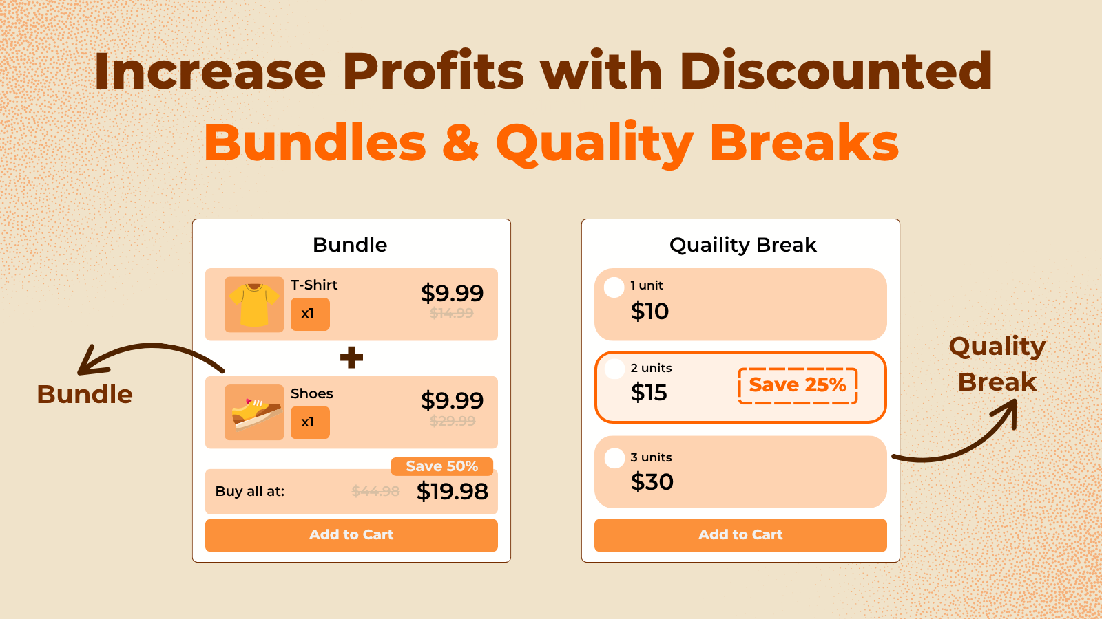 Lift AOV with Bundle offers, Quantity Breaks, Free Gifts, BOGO Volume Discount & Bundle Offers.