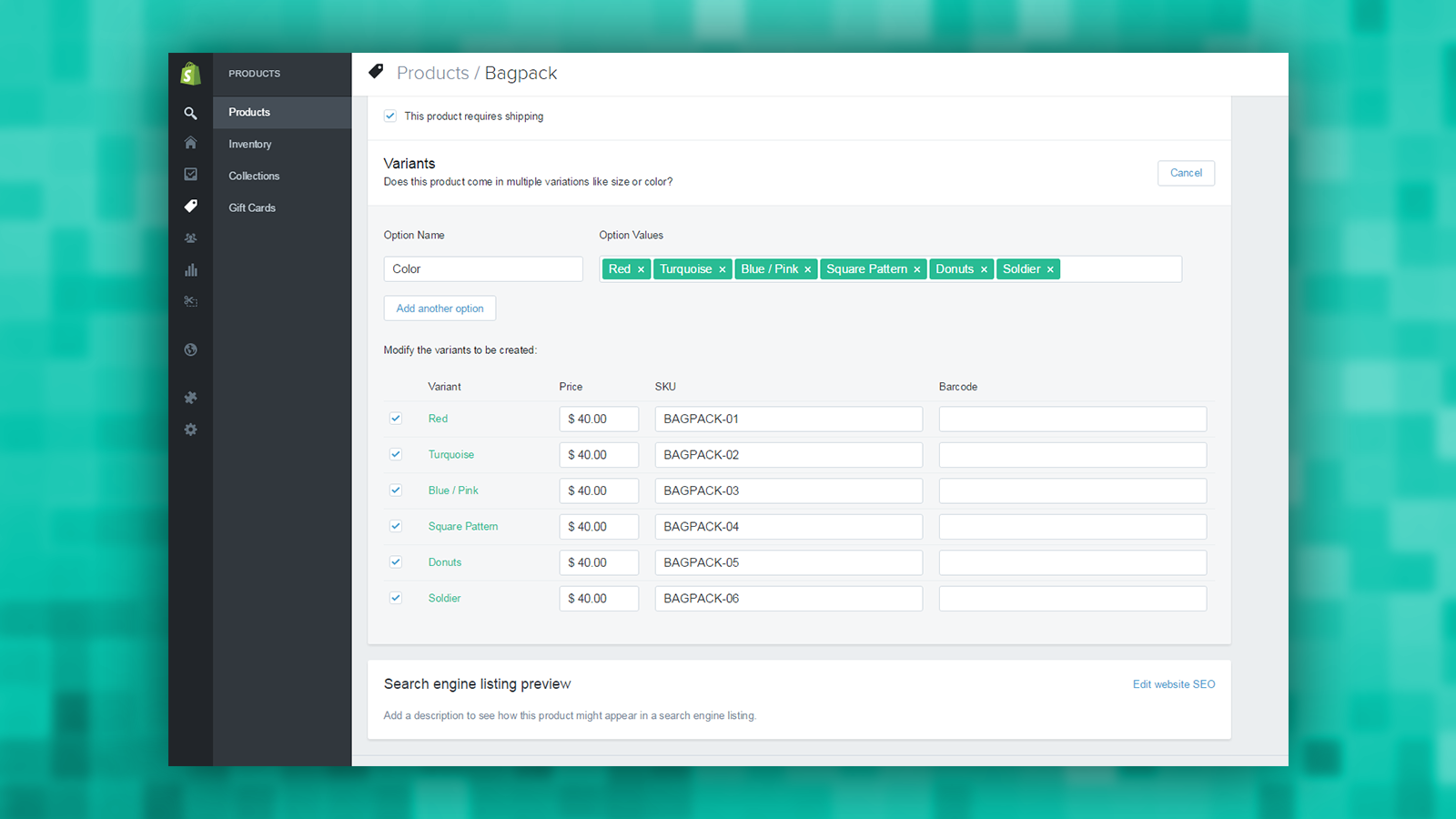 Product options, variants options, customize product, swatches
