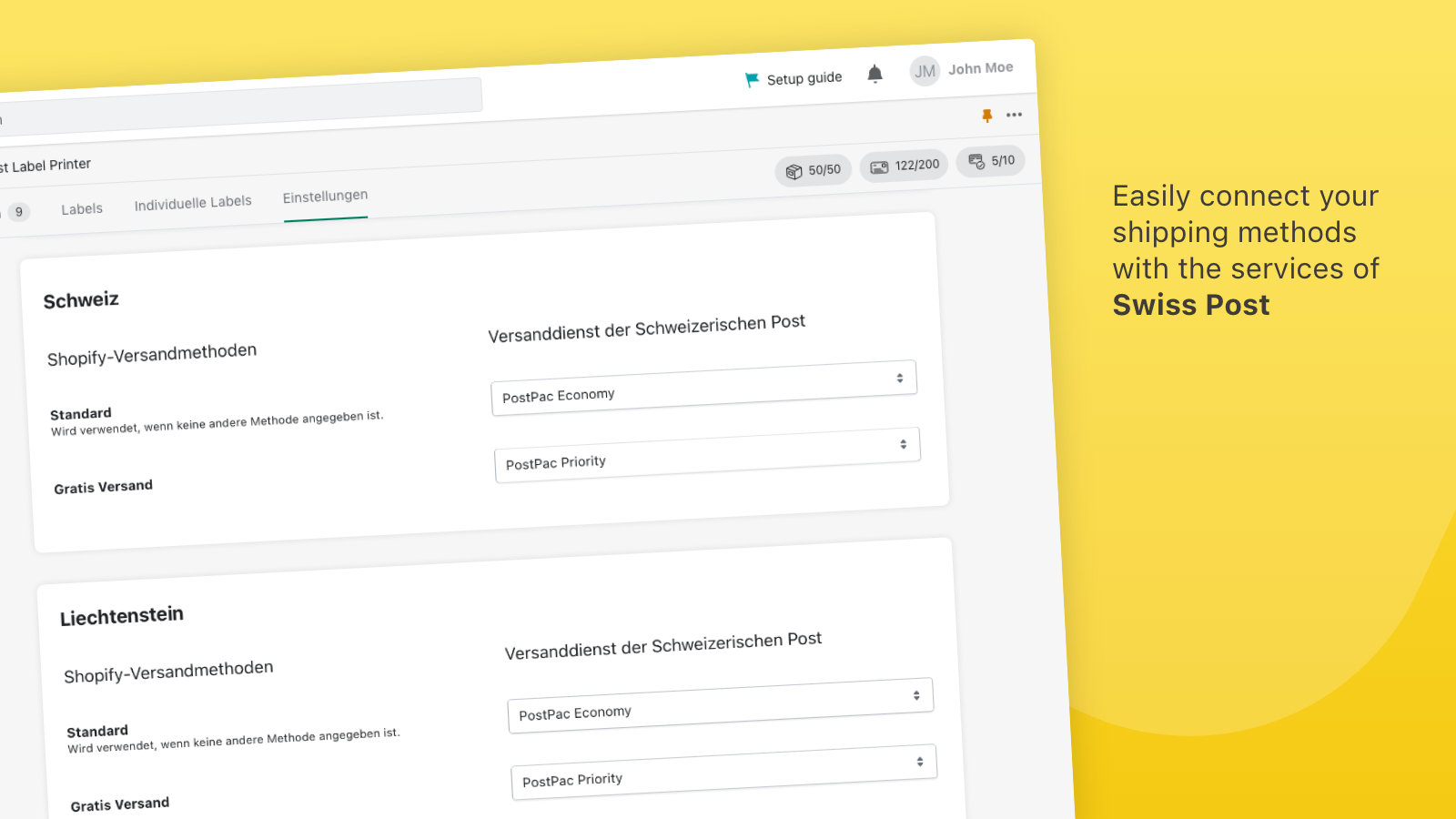 Simplify shipping with the Swiss Post Label Printer app. Create and manage labels for packages and letters directly from Shopify. Sync delivery updates, verify addresses, and generate return labels easily. Tracking numbers and URLs are added to Shopify orders automatically - no need to copy / paste. Choose from various printing sizes and enjoy faster performance with our latest integration. Save time and eliminate errors with our app, and get super-fast support via in-app chat.