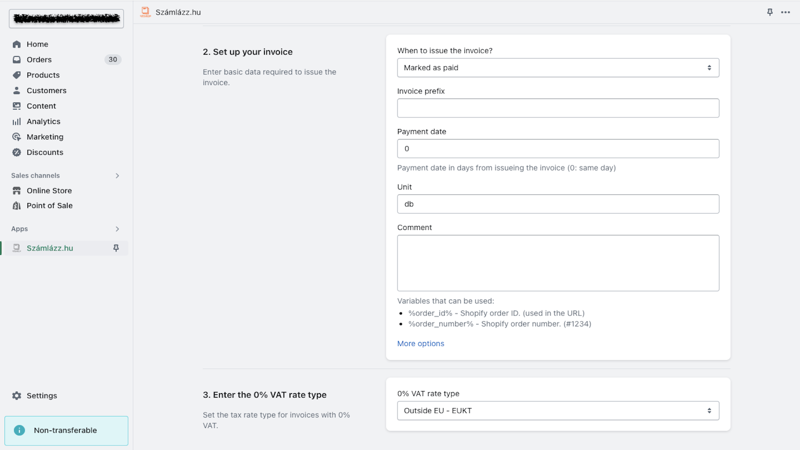 If you would like to introduce automated processes into your invoicing, Számlázz.hu is the ideal choice for you. Install this app, connect it to your Számlázz.hu account and invoices will be issued automatically (since customer and order data will be shared with the Számlázz.hu). You can set up automatic invoicing based on order status, manage VAT rate, and customise your invoicing with other settings. If you have questions, our customer service is available every day of the week.