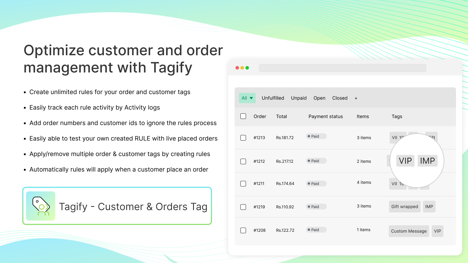 Automatic tagging for customers and orders in one app!