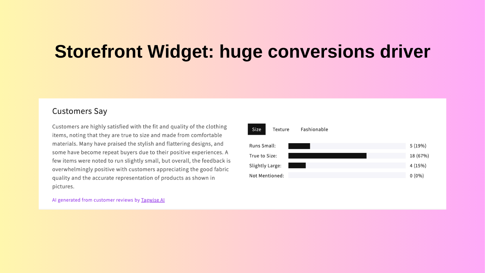 TagWise AI summarizes reviews for your insights, builds customer trust and increases conversions.