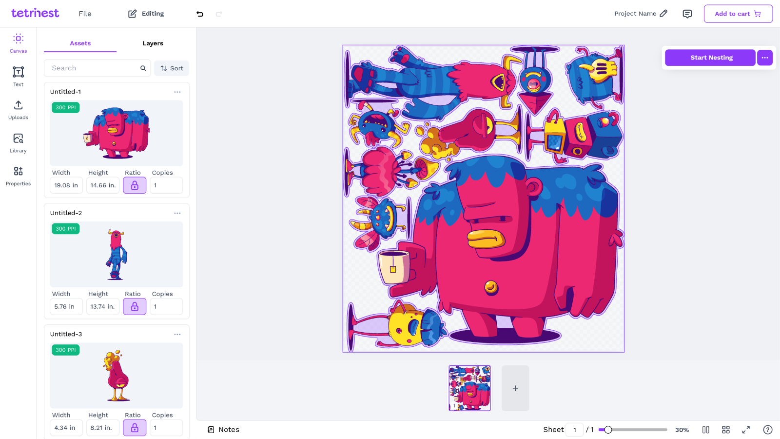 Provide customers with a true-shape nesting tool to build gang sheets and optimize film usage.