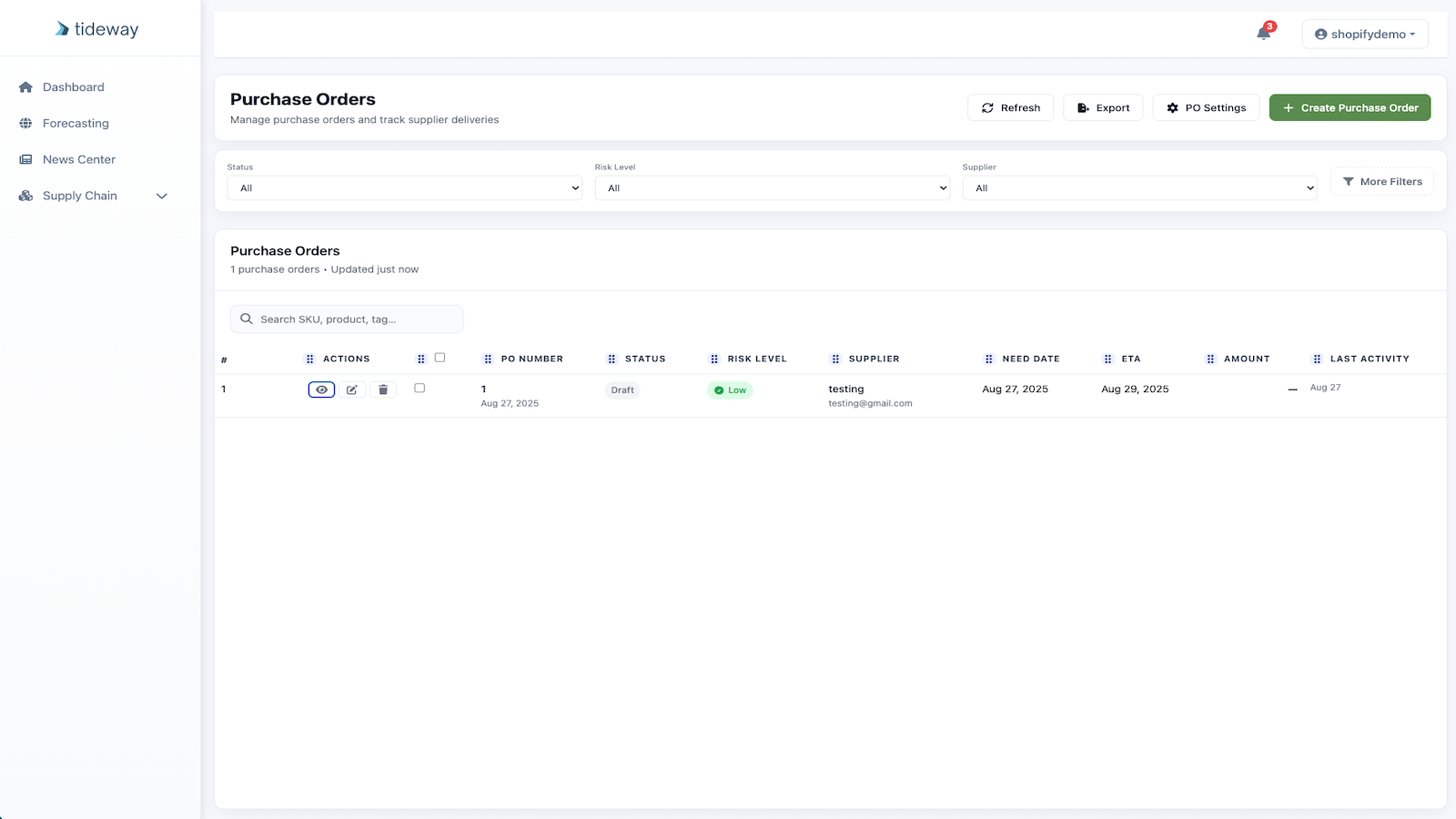 Tideway AI is an AI powered supply chain assistant. Automating the supply for any e-commerce brand