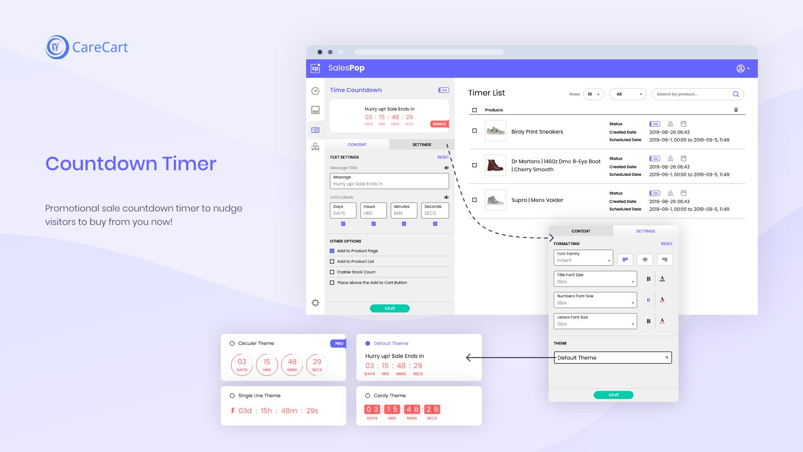 Countdown Timer creates urgency and encourages customers to buy in limited time period.
