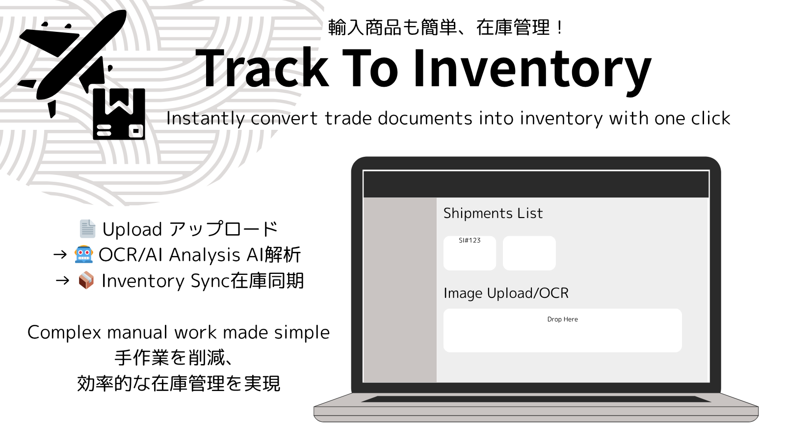 「Track To Inventory」は、輸入商品の入荷・在庫管理を効率化するアプリです。出荷書類をアップロードすることで、OCRとAIが情報を読み取り、商品別・ステータス別の入荷状況を一覧化します。SI(Shipping Instruction)単位で進捗を管理でき、倉庫到着後はShopify在庫へ数量を自動反映することが可能です。人為的ミスや確認作業を減らし、在庫管理の精度と作業効率を向上させます。