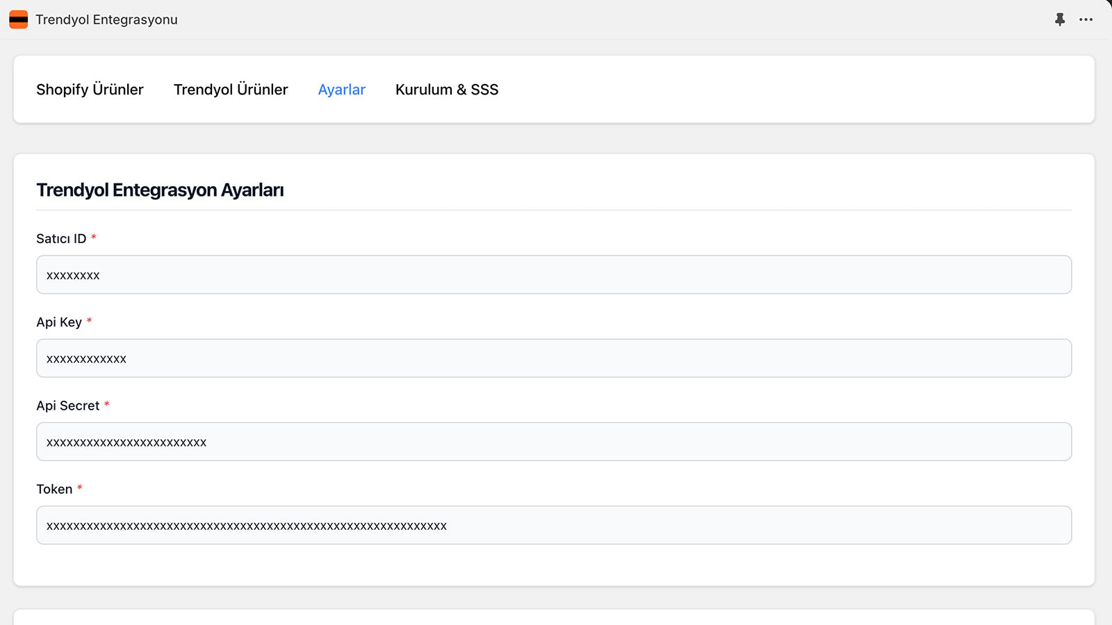 Shopify mağazanızdaki ürünlerin stok ve fiyatlarını Trendyol mağazanız ile senkronize eder. Kurulumu oldukça kolaydır, sadece bir defa mağazadaki ürünleriniz ile Trendyol ürünlerini eşleştirmeniz yeterlidir. Stok ve Fiyat güncellemesi sürekli çalışmaktadır, mağazanız sipariş aldığında ya da ürünlerinizin stoğu değiştiğinde Trendyol'daki ürünlerinizin fiyatını ve stoğunu değiştirir. Uygulama yeni ürün girişi yapmamaktadır, sadece Trendyolda'ki mevcut ürünleriniz üzerinde çalışmaktadır.