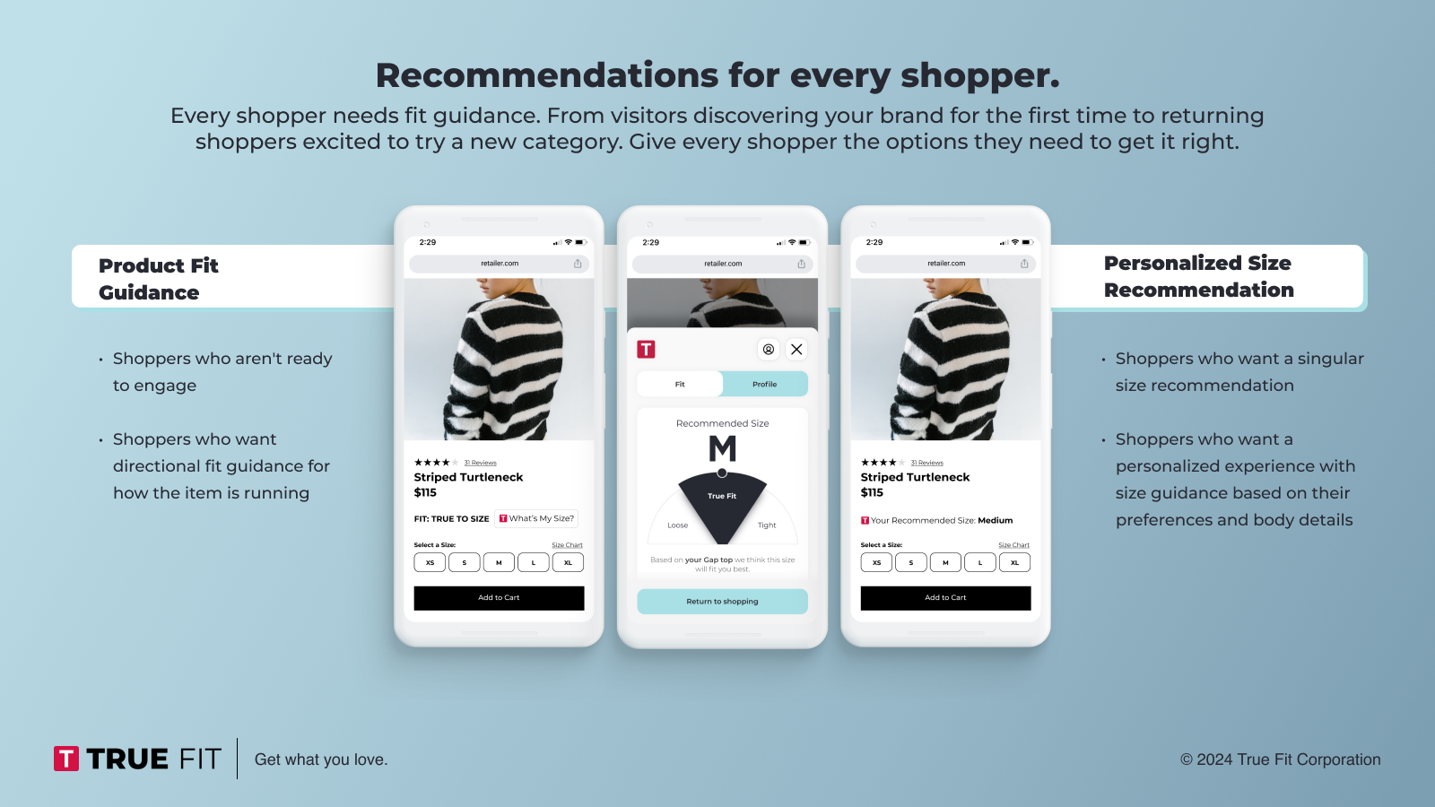 The AI size-and-fit solution for your shoppers, your teams, your brand: True Fit.