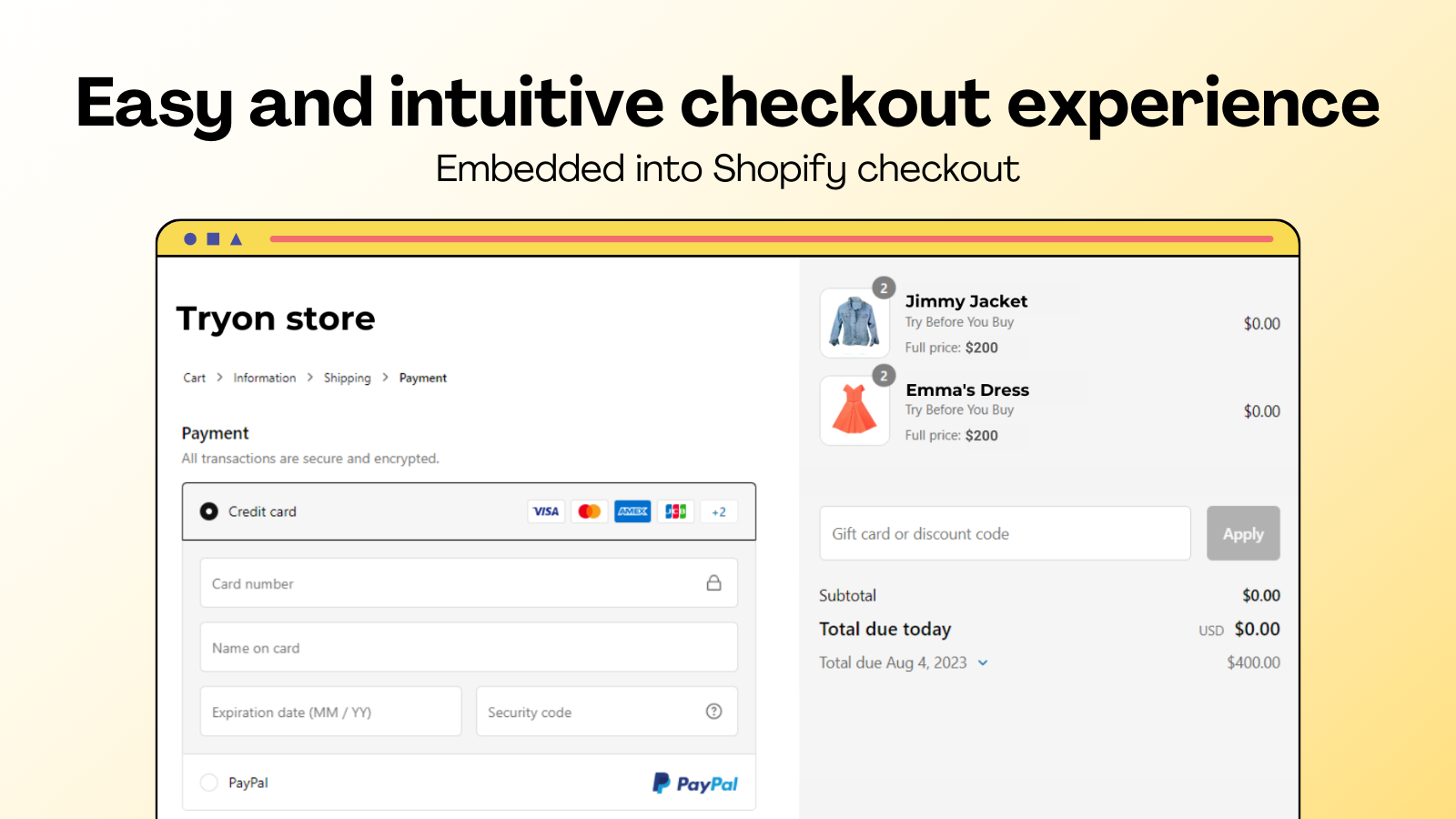 Offer a Try Before You Buy experience and leverage a $0 checkout to overcome all customer doubts