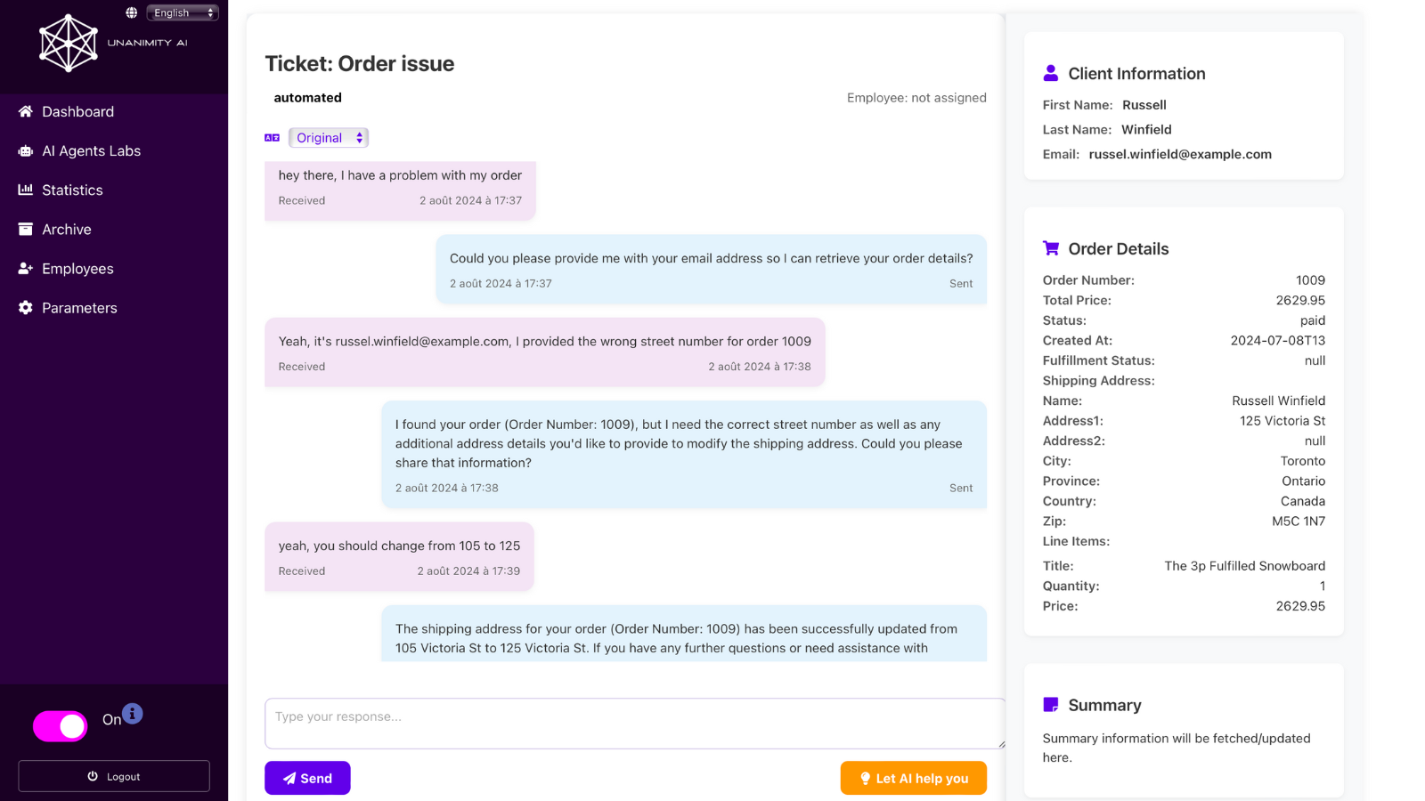 UnanimityAI automates customer support, centralizing inquiries and enhancing response efficiency.