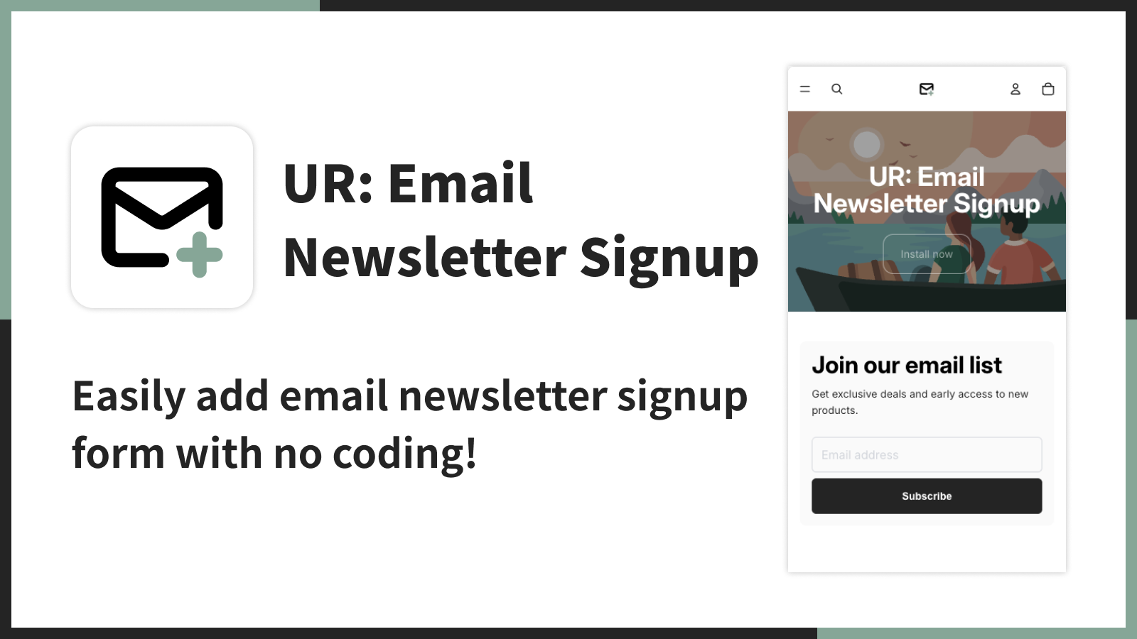 "UR: Email Newsletter Signup" is the perfect tool for merchants who understand the power of email marketing. Our app allows you to embed stylish, no-code signup forms on your homepage, product pages, collection pages, or anywhere else. Solve the challenge of limited signup opportunities by placing forms exactly where your customers are engaged.
