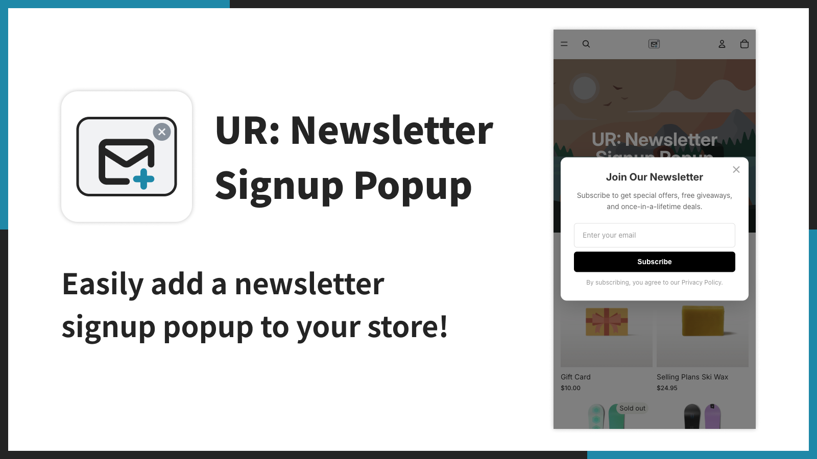 Add a newsletter signup popup to your store. Collect emails easily, no coding required.