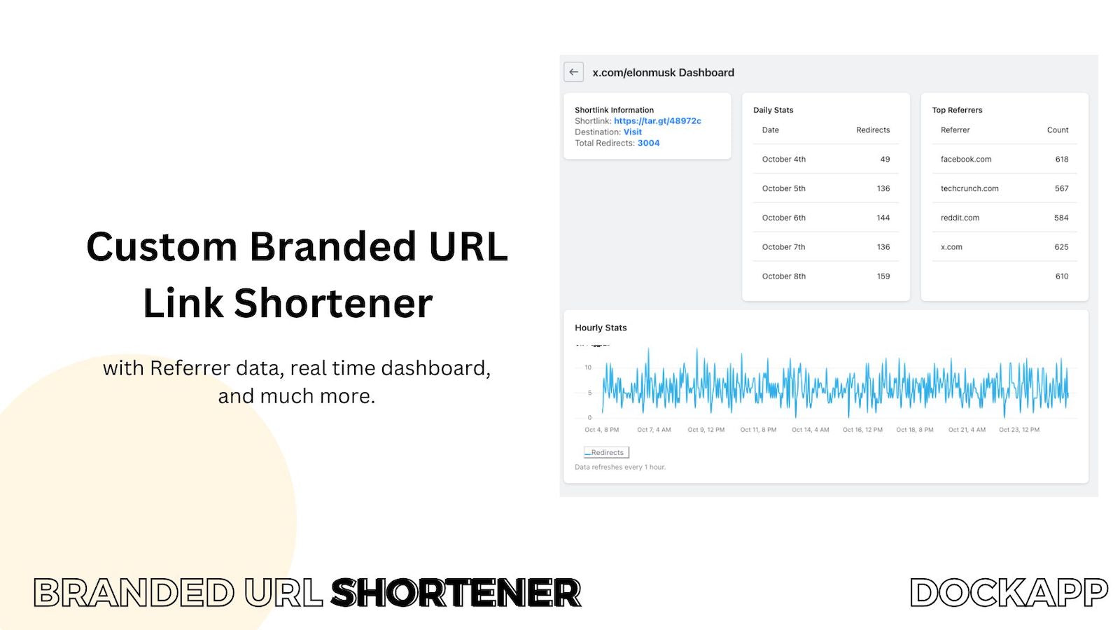 Branded URL Shortener is your all-in-one tool for managing and optimizing store URLs. You can create custom branded short links to preserve your store's identity. With DockApp you also get a performance dashboard to monitor individual link with real-time click tracking. Hide ugly UTM parameters by giving your links clean by concealing long tracking parameters.