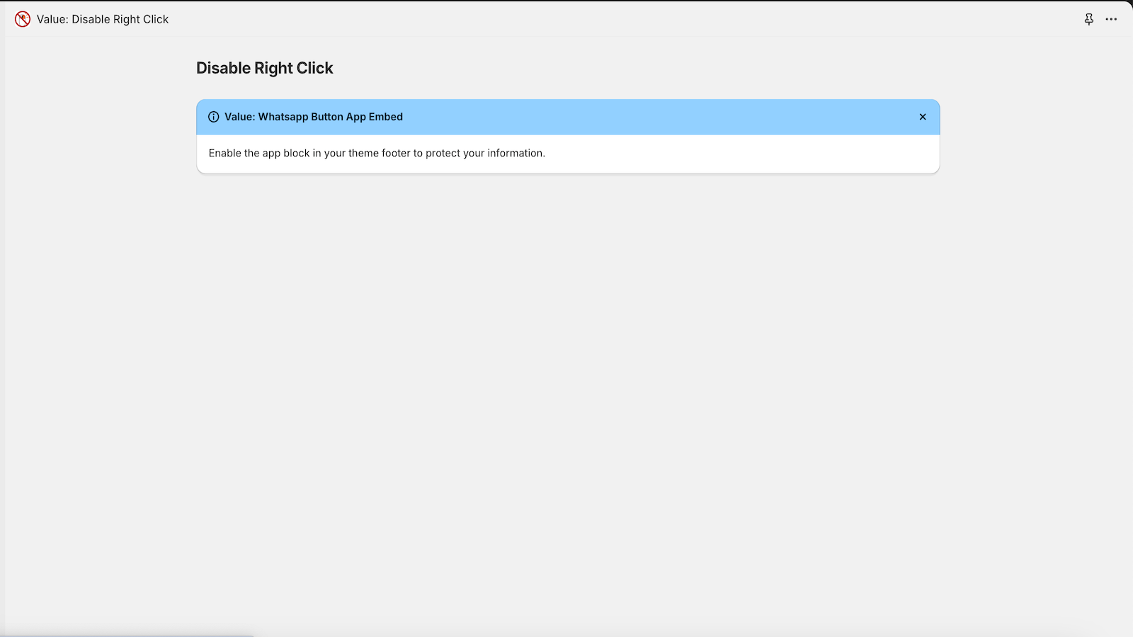 Easy to setup disable right click app. Protect an average customer from downloading your image and other assets by disabling right click on your shopify website. Take it live in under 2 minutes. No code/integration required to go live.