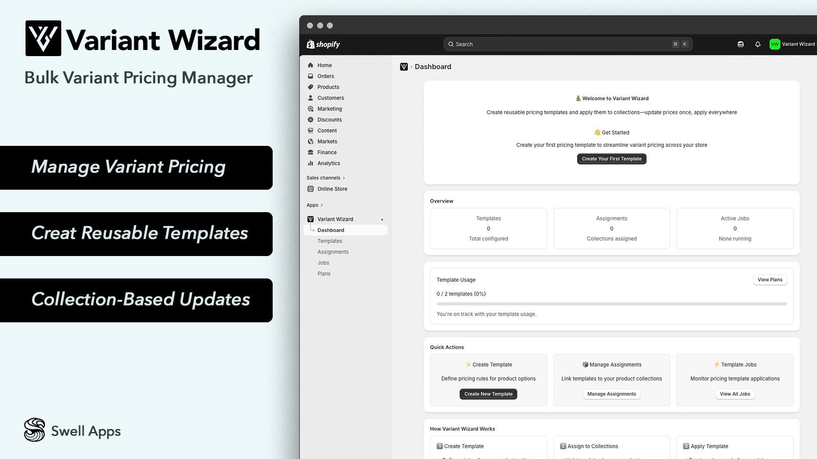 Variant Wizard automates pricing for products with multiple options like size, color, or material. Create reusable pricing templates and apply them to entire collections instantly. Process hundreds or thousands of products in bulk while the app works in the background. Preview all changes before applying, track job progress in real-time, and manage complex pricing structures with ease. Perfect for fashion, jewelry, and any store with variant-based pricing.