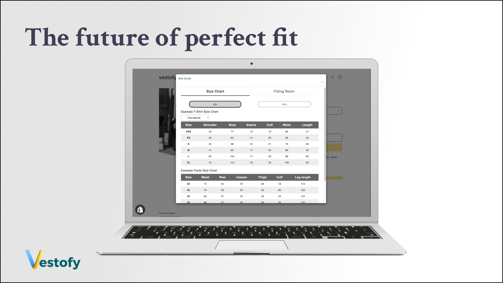 Create and manage size charts with advanced size fit for your shoppers. Size confidence improve customer shopping experience thereby improve sells and decrease cart abandonment. Size fit decrease product returns and improve customer returns. Vestofy size fit according to customers existing clothes dimension that can be measured with smartphone camera OR alternatively customer can estimate by hight and weight. This reliable method improve Size confidence when shopping online.