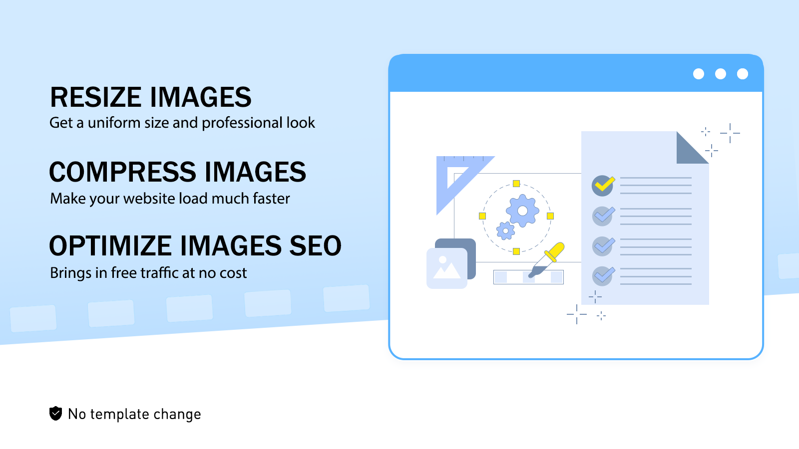 AI driven image resizing, scaling, cropping, watermarking makes your store looks more professional. Compress images for faster page loads. Optimize alt-text and file name SEO to boost website traffic.