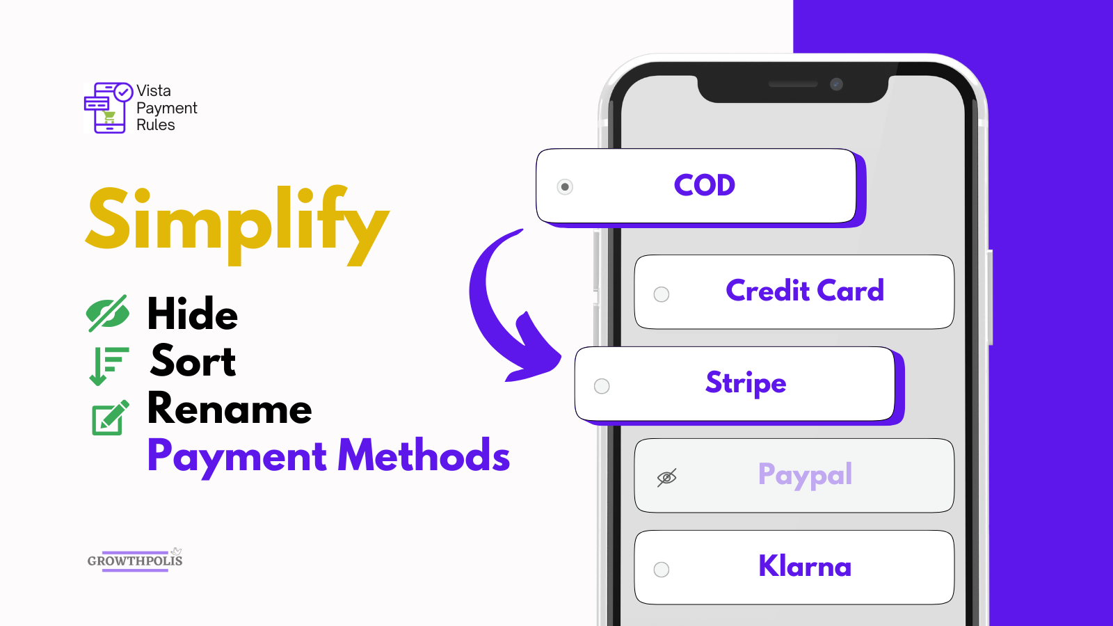 Easily Hide, Sort, and Rename Payment Methods based on a wide variety of Payment Customization Rules