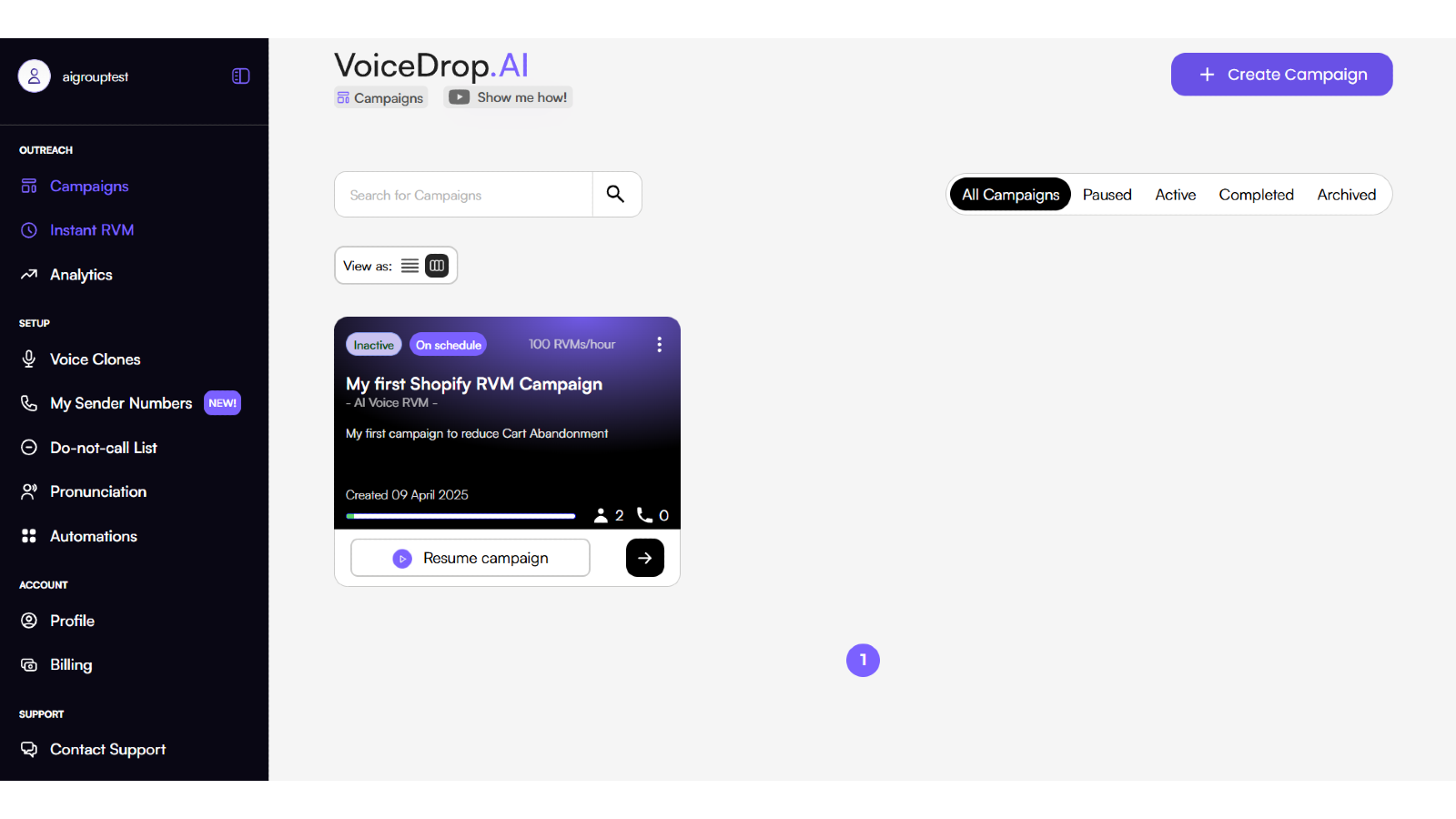 Easily send Ringless Voicemails to customers and reduce cart abandonment