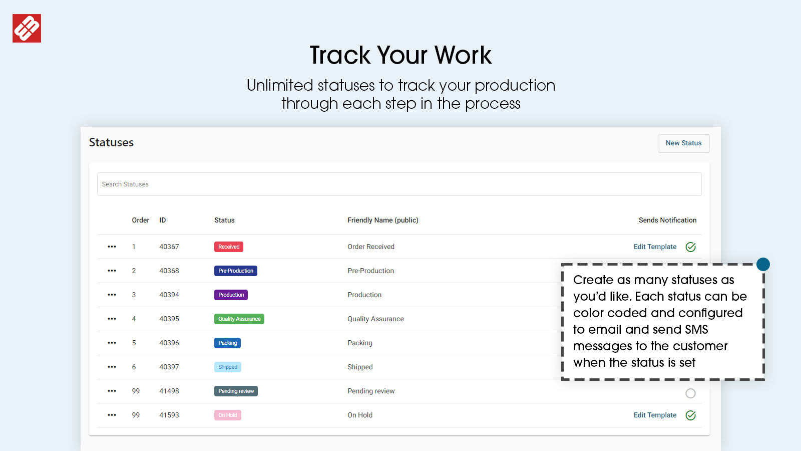 Manage your order production processes and notify your customers along the way