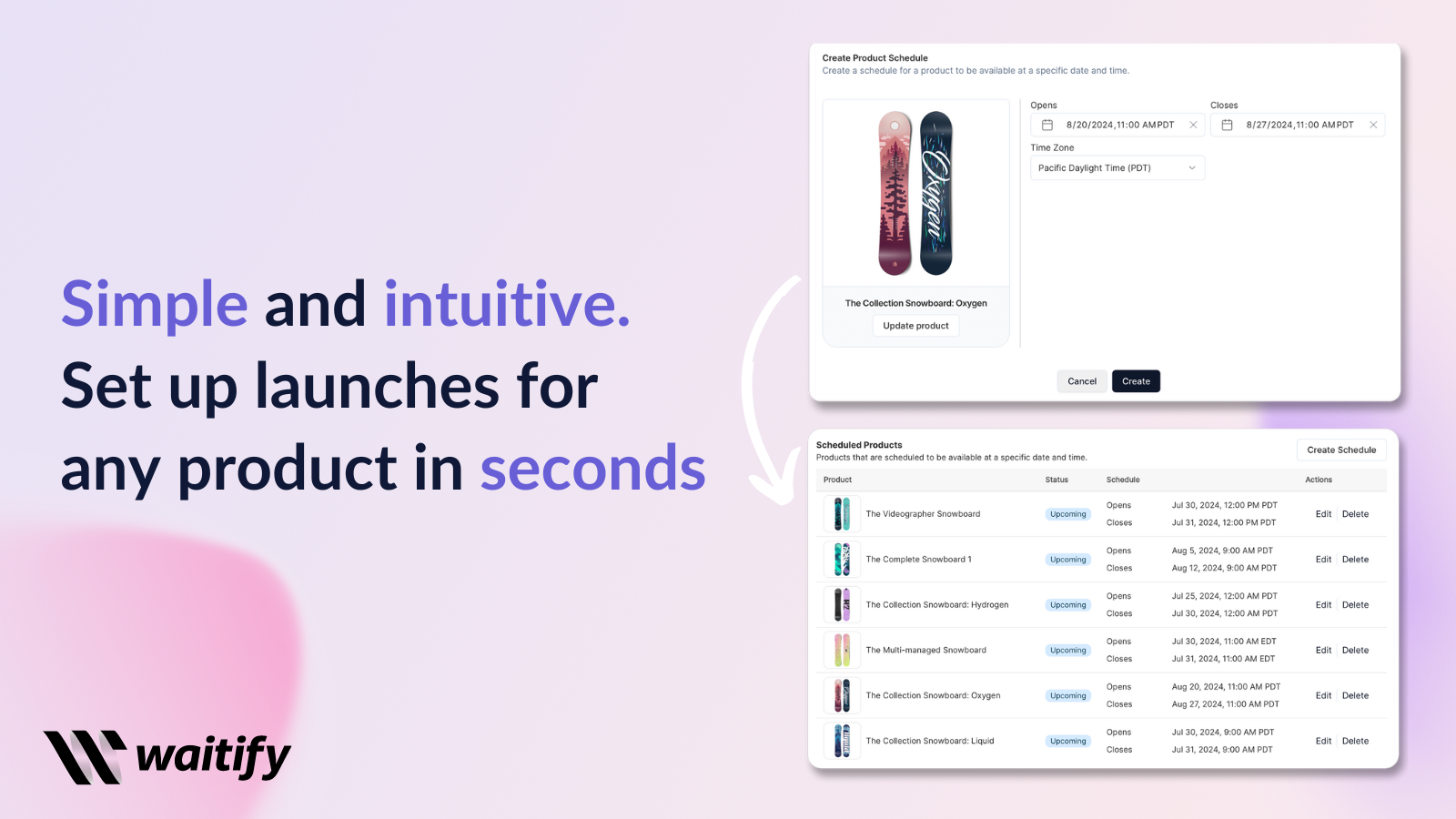 Elevate your Shopify product launches with Waitify – the all-in-one solution for scheduled, secure, and branded product launches. Our platform gives you precise control over product availability while safeguarding against unauthorized access. From limited editions to Black Friday and holiday flash sales, Waitify ensures your products launch flawlessly. Combining scheduling precision with ironclad access management, we offer Shopify store owners a tool to perfect their product launch strategy.